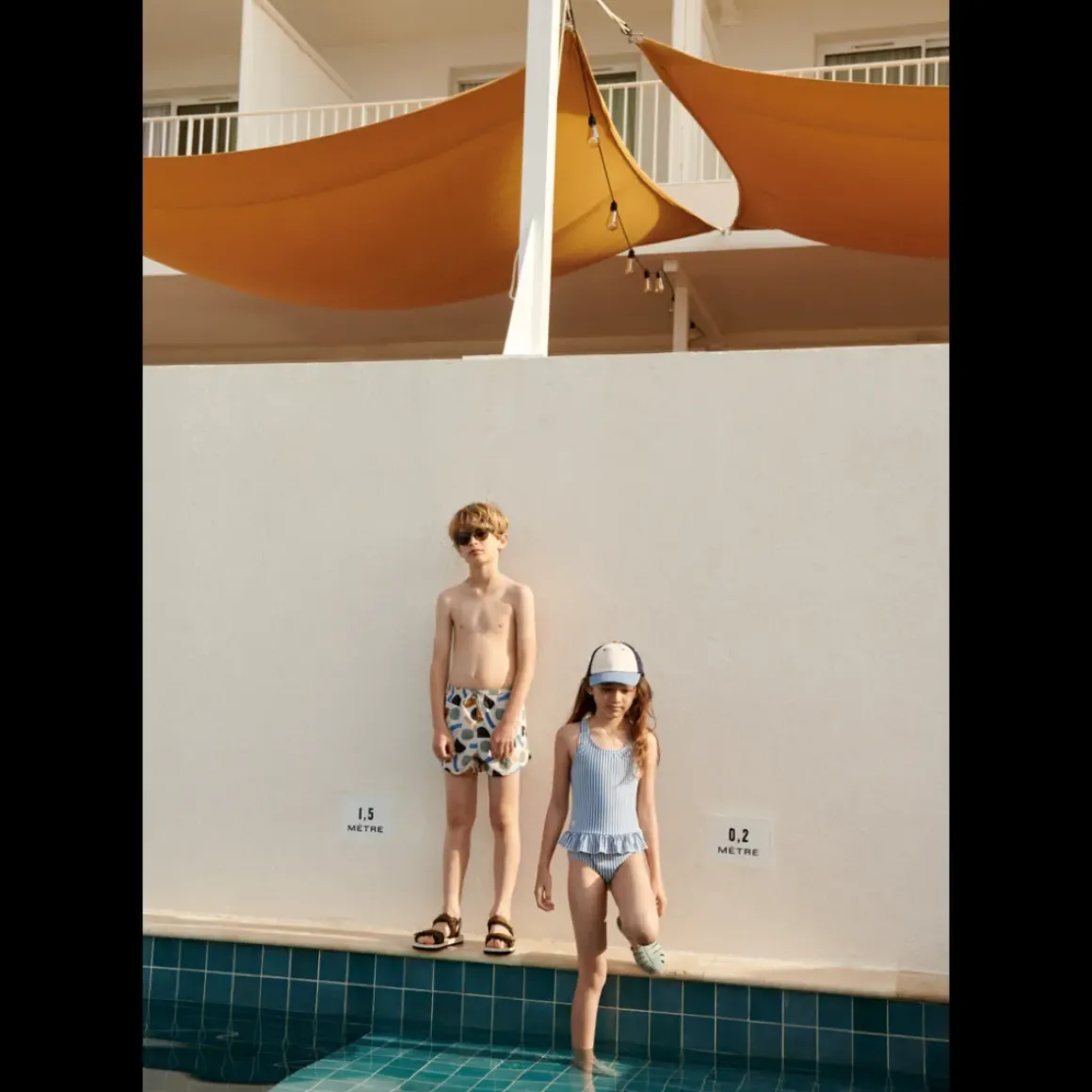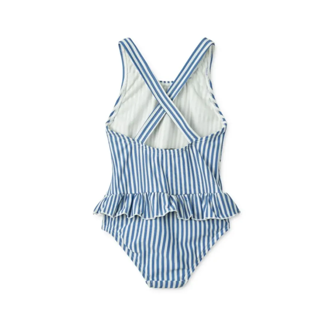 STRIBET BADEDRAGT MED FLÆSE UV 40+ Lad dit barn hoppe i poolen eller bølgerne i en LIEWOOD-bestseller – den fine Amara-badedragt med dekorative flæser, fremstillet af hurtigtørrende genanvendt polyester.