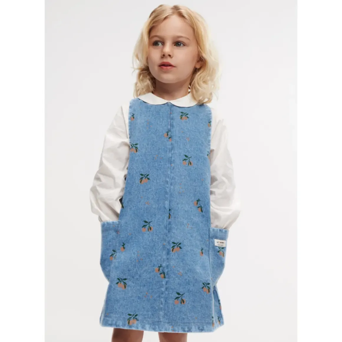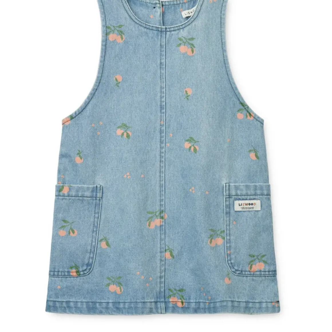 Denimkjole i en lys vask, der giver den et cool og afslappet retro-udtryk. Den har en løs pasform, der sikrer, at kjolen sidder behageligt og det fine fersken print tilfører et legende twist. En moderne klassiker til dit barns garderobe. Kom en bomuldsskjorte under for et cool look.