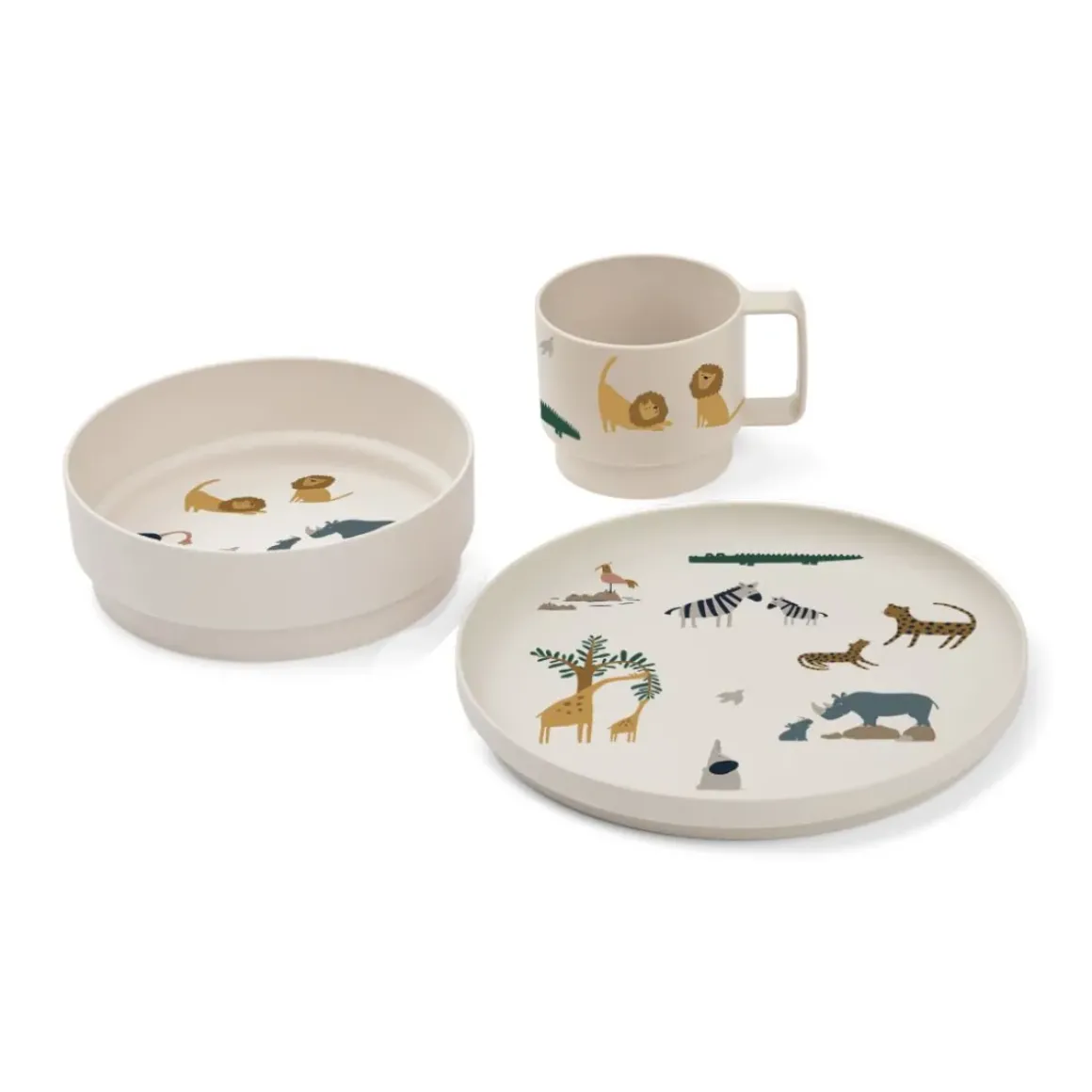 Gør måltiderne lidt ekstra sjove med det Archi servicet, der har sjove og finurlige print. Sættet indeholder en kop, en skål og en tallerken og er fremstillet i let og brudsikkert genanvendt PET. Sættet er designet til at kunne stables og kan også kommes i vaskemaskinen – perfekt til hverdagen.