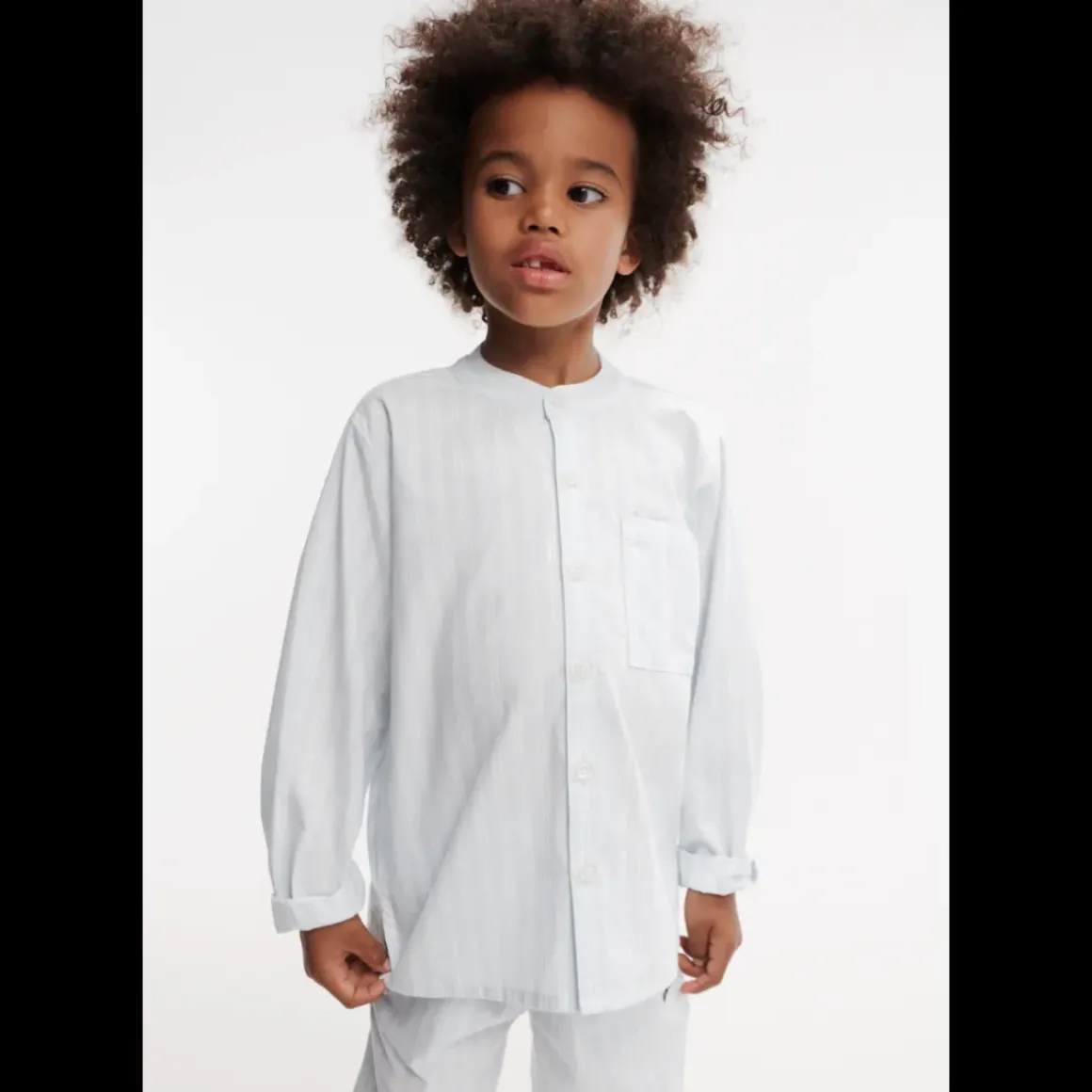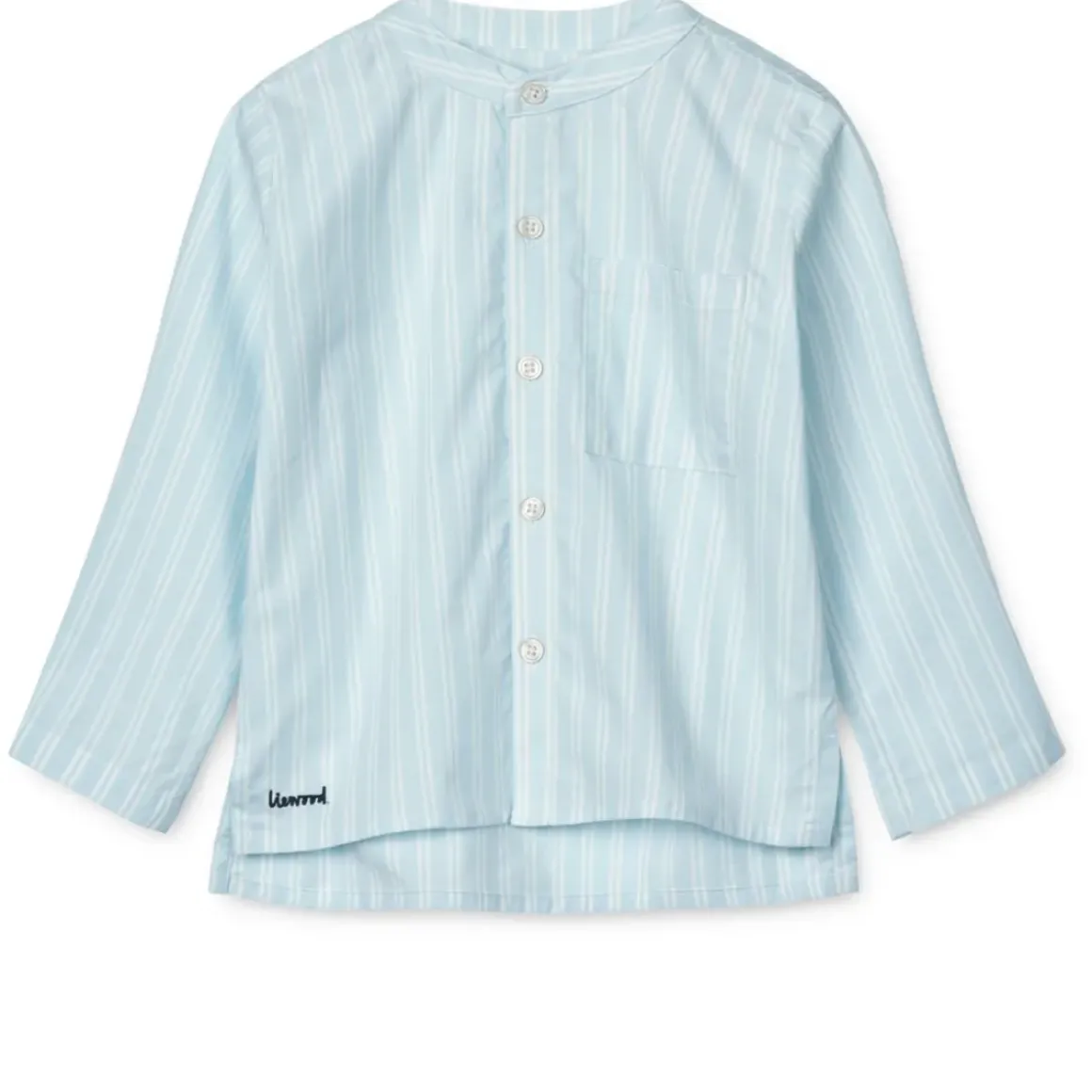 Denne langærmede bomuldsskjorte uden krave og et afslappet look er fremstillet af blød og åndbar økologisk bomuldspoplin. Den længere ryg gør, at den kan bruges løst over et par shorts eller bukser for et nemt, men alligevel stilet outfit.