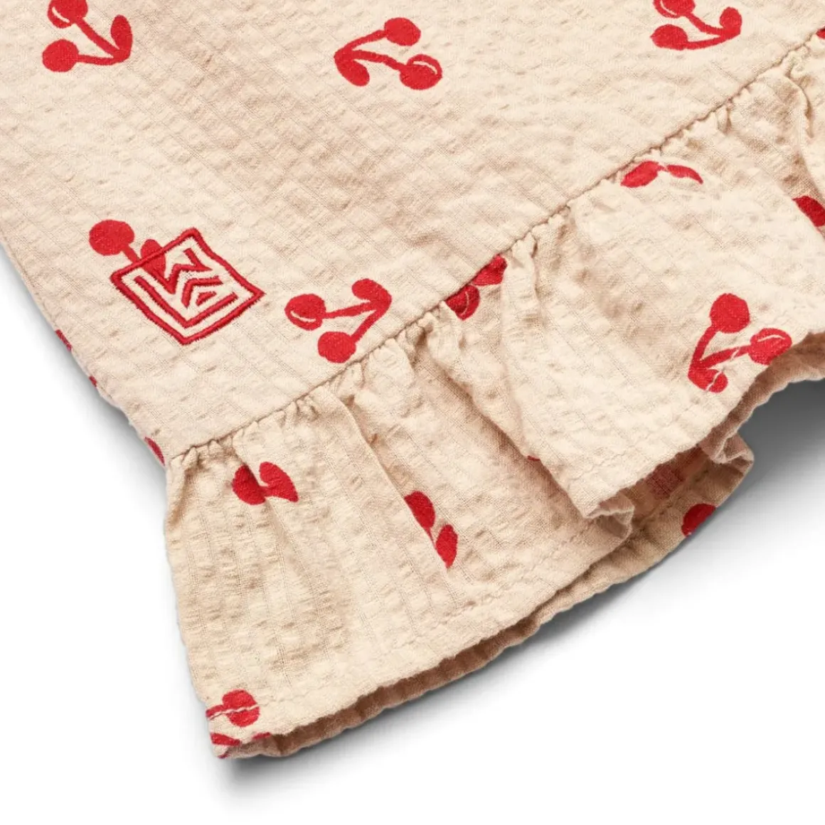 Den lette, strukturerede bomuldskvalitet giver god åndbarhed, og flæsekanten og de tynde skulderstropper føjer raffinerede