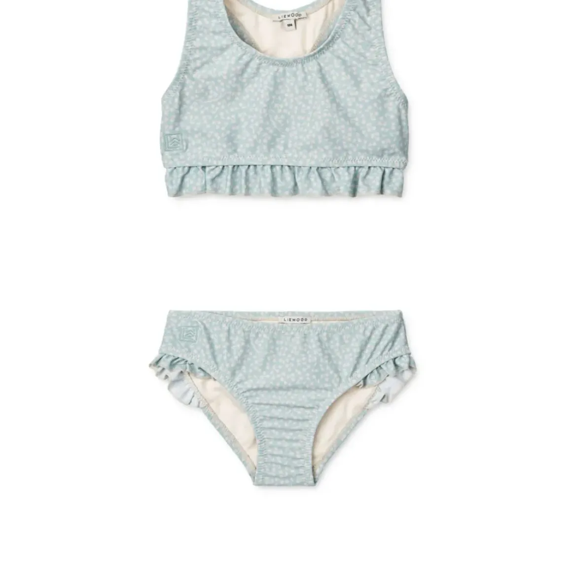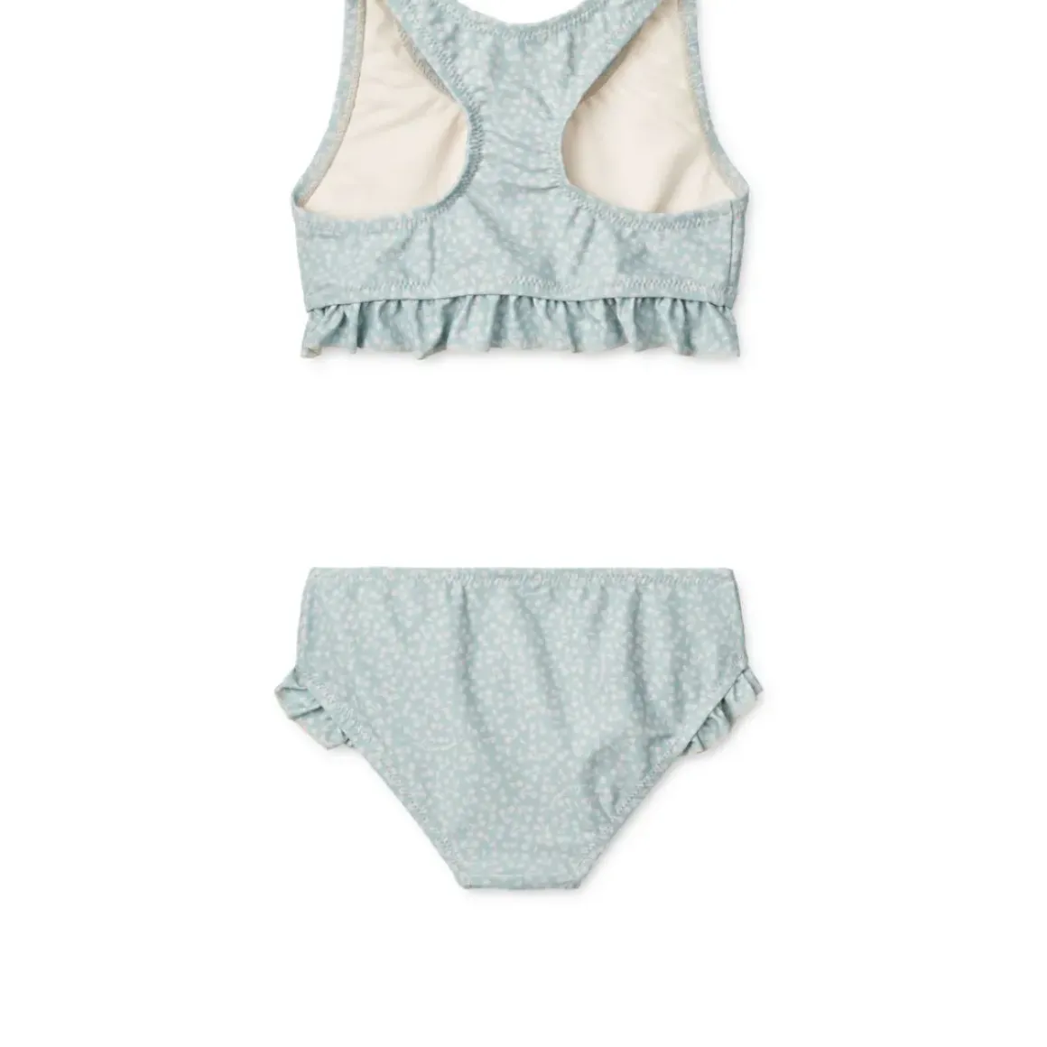 Lad dit barn springe i poolen eller dykke igennem bølgerne med vores nye Bellamy bikini. Racer-ryggen på toppen kombineret med flæsedetaljerne og sommerfarverne gør bikinien både cool og praktisk til de sjove dage fyldt med svømning og leg.