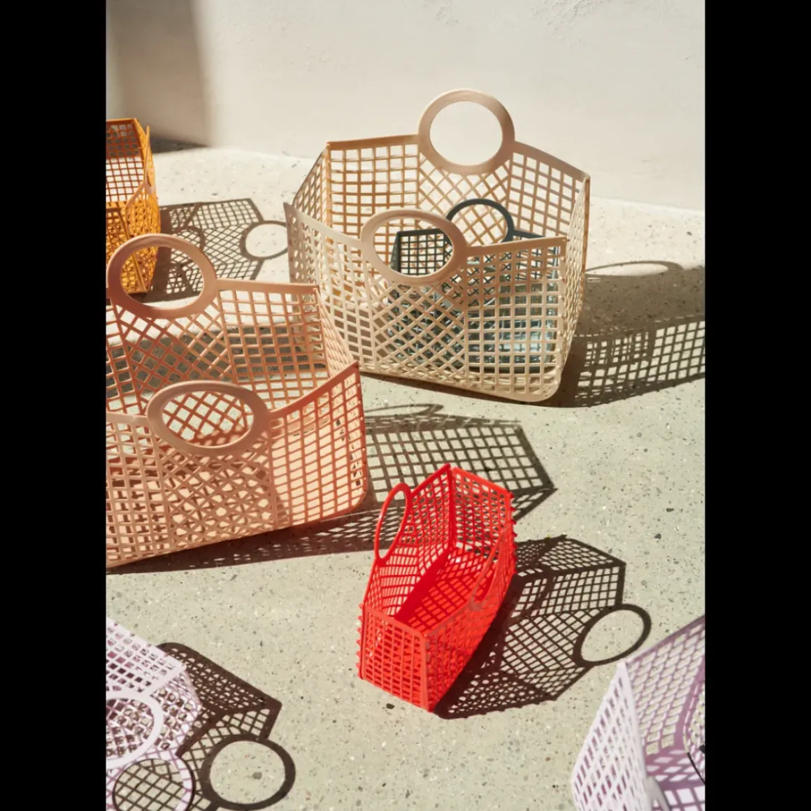 Hold styr på legetøj, vandflasker og andre strandting med Bloom kurvetasken. Tasken kan let samles og skilles ad igen, hvilket gør den perfekt til feriekufferten. Eller brug den derhjemmet til praktisk og pæn opbevaring af bamser og bøger.