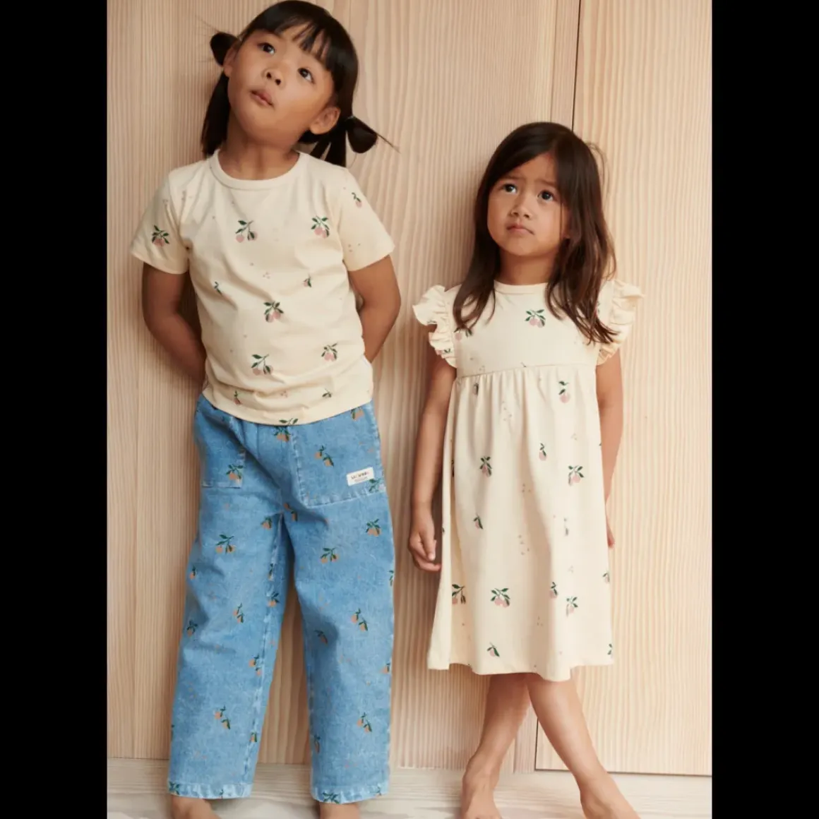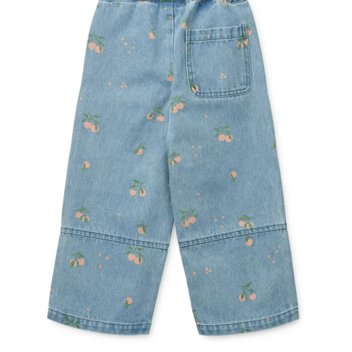 Denimbukser med vide ben og i en lys vask giver dem et cool og afslappet retro-udtryk. De har en løs pasform, der sikrer, at bukserne sidder behageligt og det fine fersken print tilfører et legende twist. En moderne klassiker til dit barns garderobe.