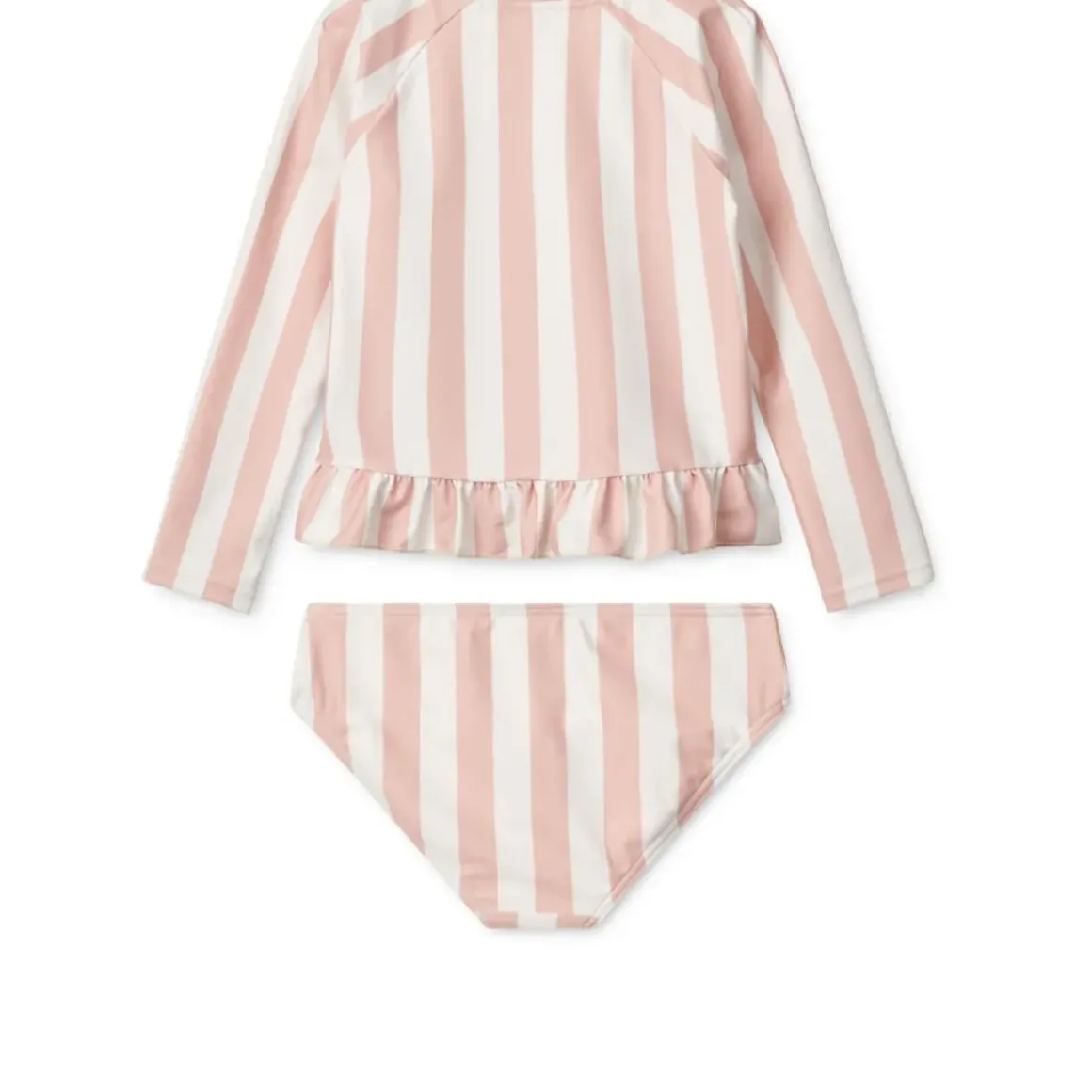 Med cool sommerfarver og søde flæsedetaljer er det todelte Dagny badetøjssæt et smart look til stranden og poolen. Det har UV40+ beskyttelse og er lavet af et hurtigtørrende stof, hvilket gør det til det ideelle valg til familietiden ved vandet. Fuldfør looket med en LIEWOOD solhat til de solrige dage.