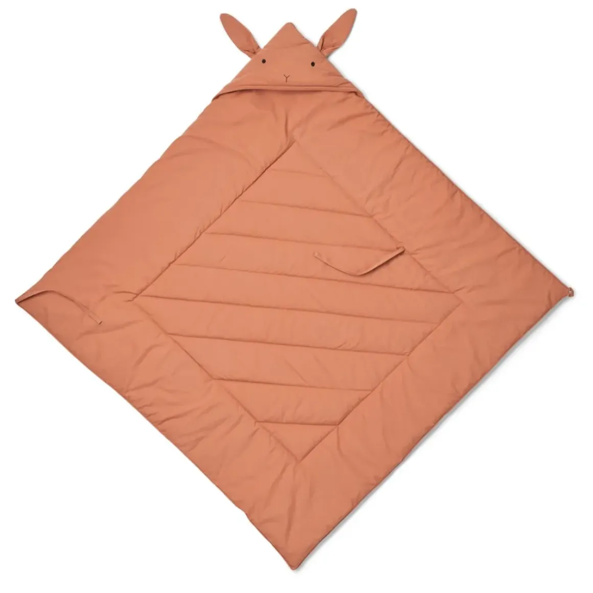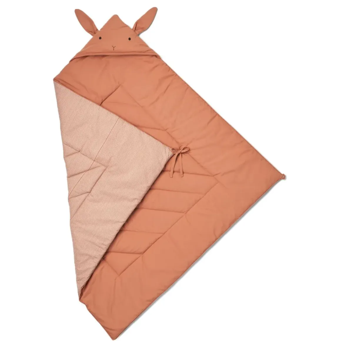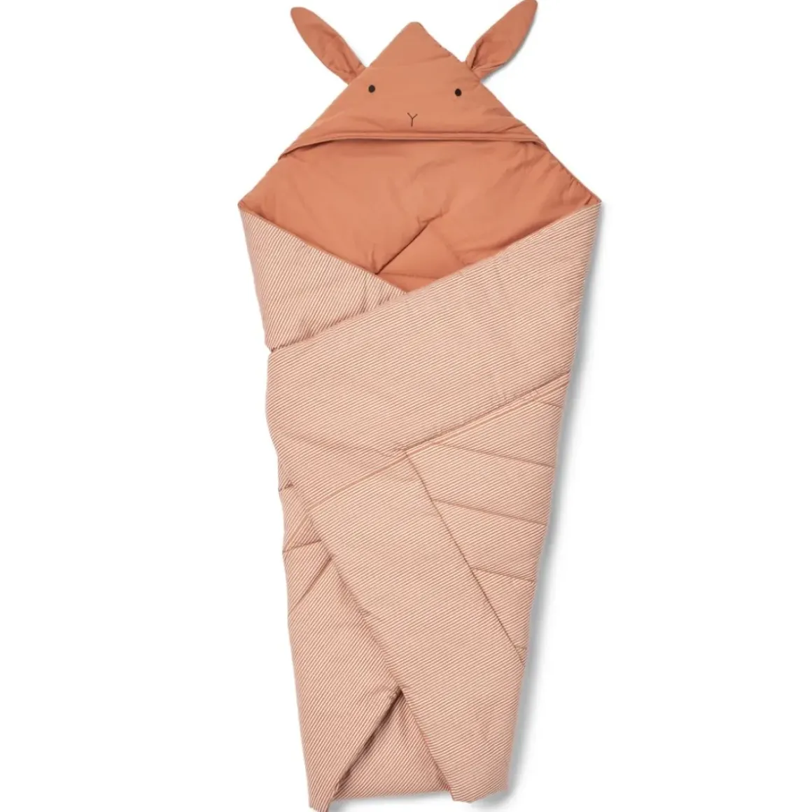 Det bløde Daxton svøb i bomuld er dejligt at putte sig i. Svøbet er fremstillet i 100 % økologisk bomuld og genanvendt polyester og har en sød hætte med broderet kaninansigt og ører fastgjort i den øverste søm. Med snore til at lukke og løkke og knaplukning er dette lækre svøb perfekt til at holde barnet konfortabelt og varmt.