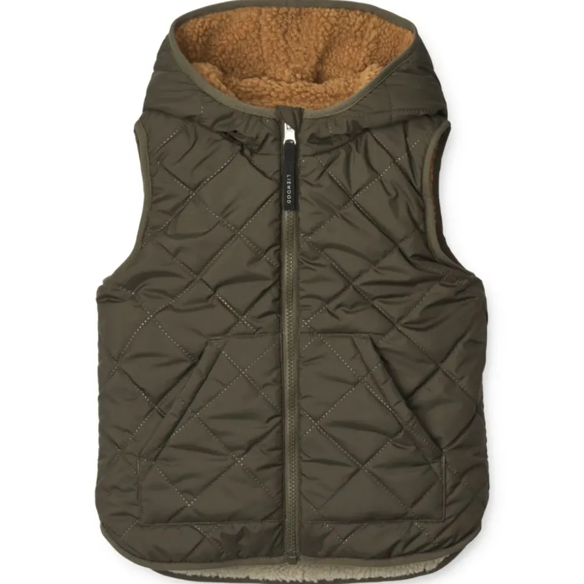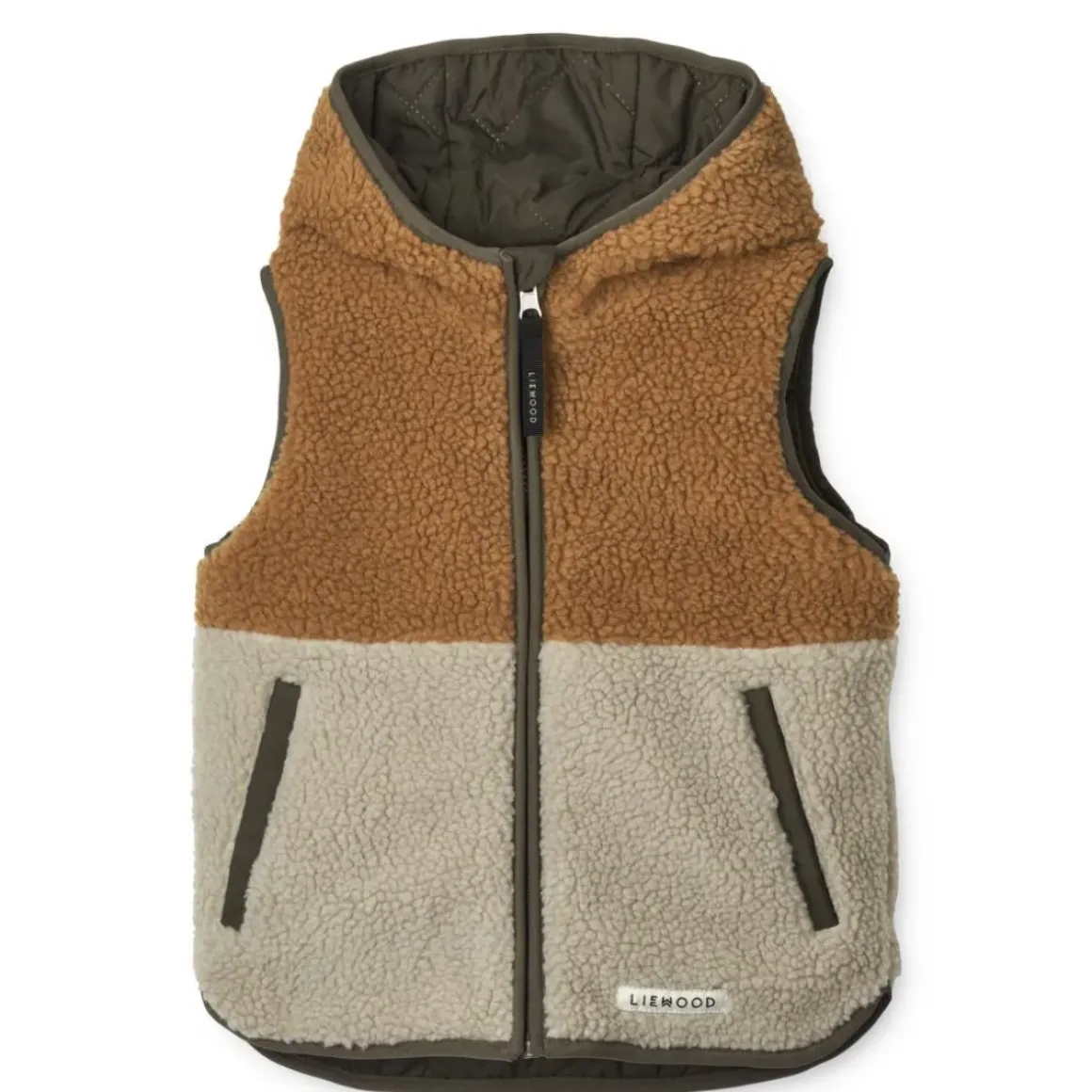 Komfortabel, praktisk og ideel til udendørs leg. Dina-vesten med hætte er fremstillet i 100 % genanvendt polyester og har blød og behagelig Sherpa-polstring. Du kan bruge vesten selvstændigt eller som et ekstra varmt lag under regntøj eller softshell-tøj fra LIEWOOD.
