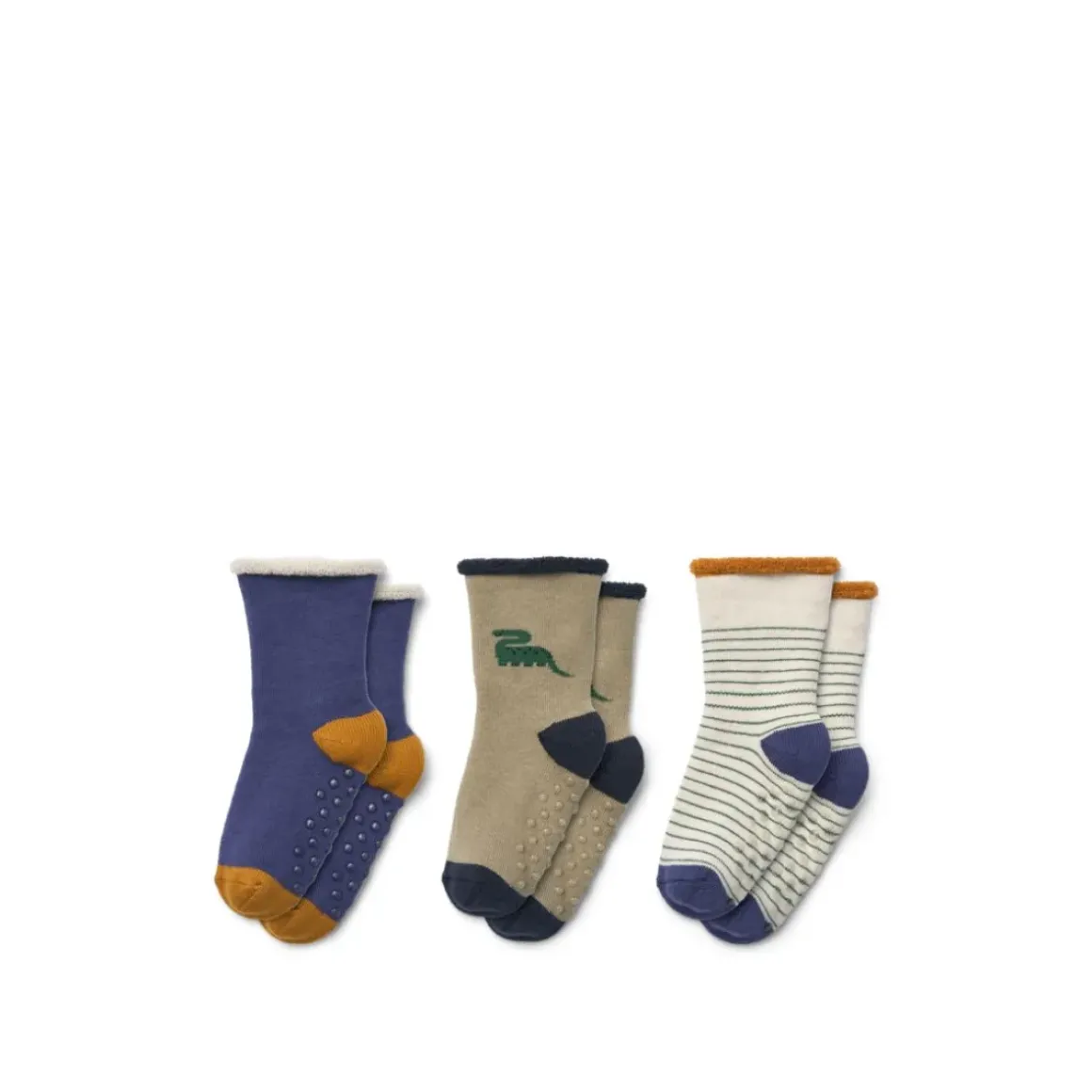 Eloy-strømperne er en sand hverdagsfavorit til de yngste fødder og giver et blødt og behageligt fundament med den åndbar frotté, et skridsikkert mønster i bunden og sjove farvekontraster.