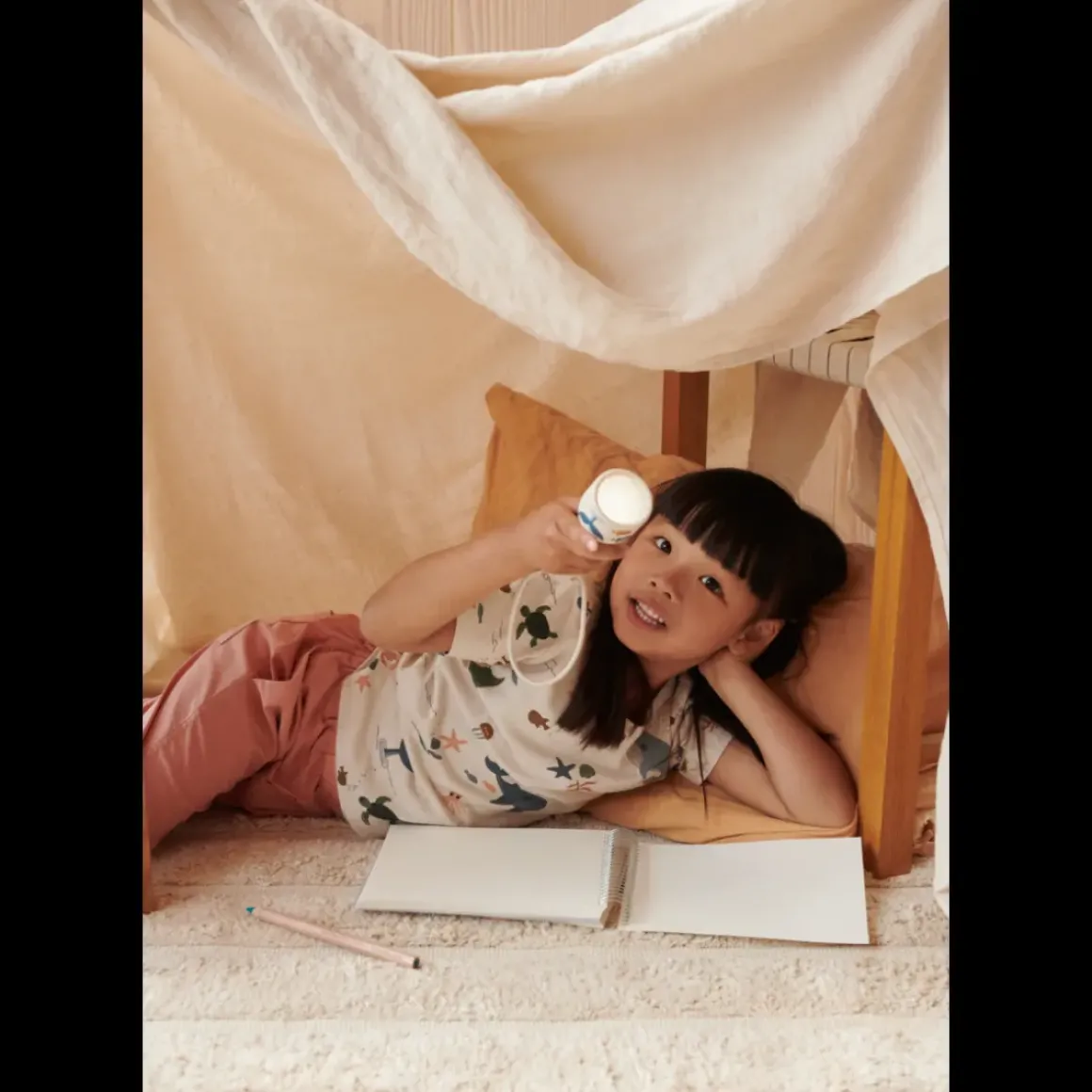 Gry-lommelygten er blød, praktisk og et sjovt stykke udstyr til leg og udforskning nye hjørner i hjemmet. Lommelygten kan lyse et rum op og den dæmpbare funktion gør den ideel til at tage med ind i børnenes hule for hyggelige små stunder.