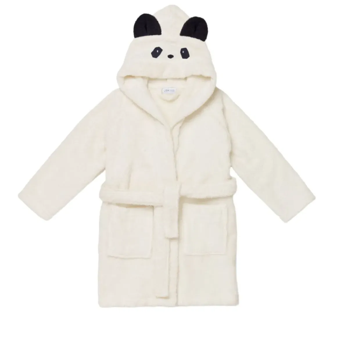 Blød badekåbe i økologisk bomuld med søde broderede dyredetaljer og ører på hætten. De praktiske trykknapper foran hjælper med at holde kåben på plads, mens den tykke kvalitet holder dit barn varm og tør efter badet.