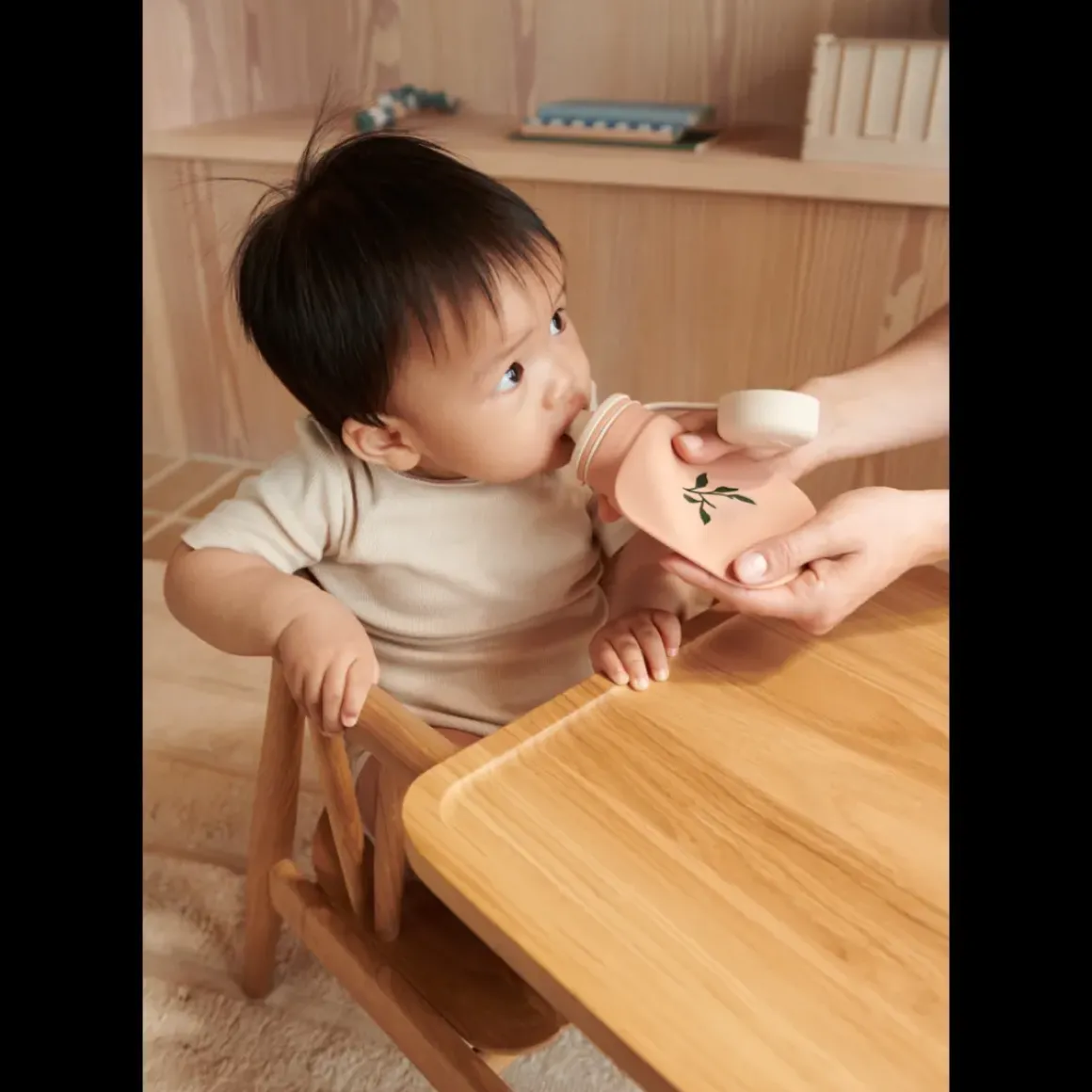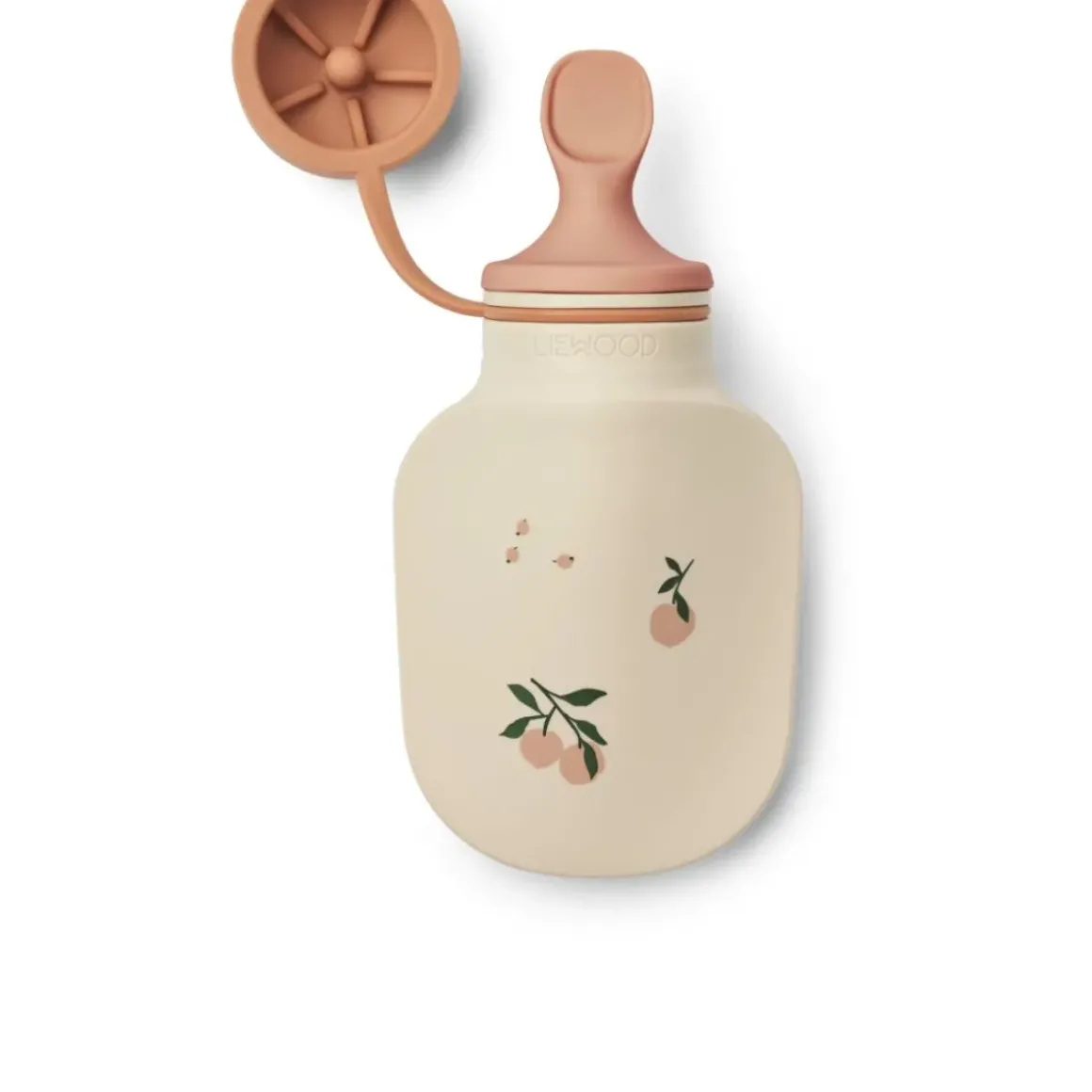 - Aftagelig, blød ske hjælper med at dosere smoothien, pureen og grøden jævnt så det er nemmere for de mindste at spise