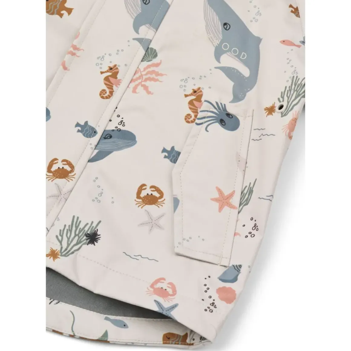 - Regnjakke med aftagelig hætte