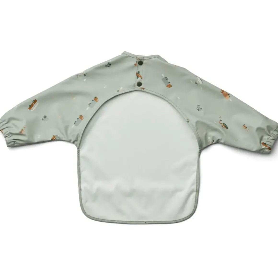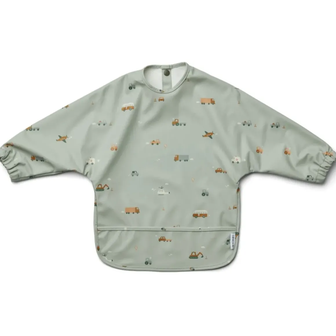 - Praltisk spiseforklæde med længe ærmer og fine print
