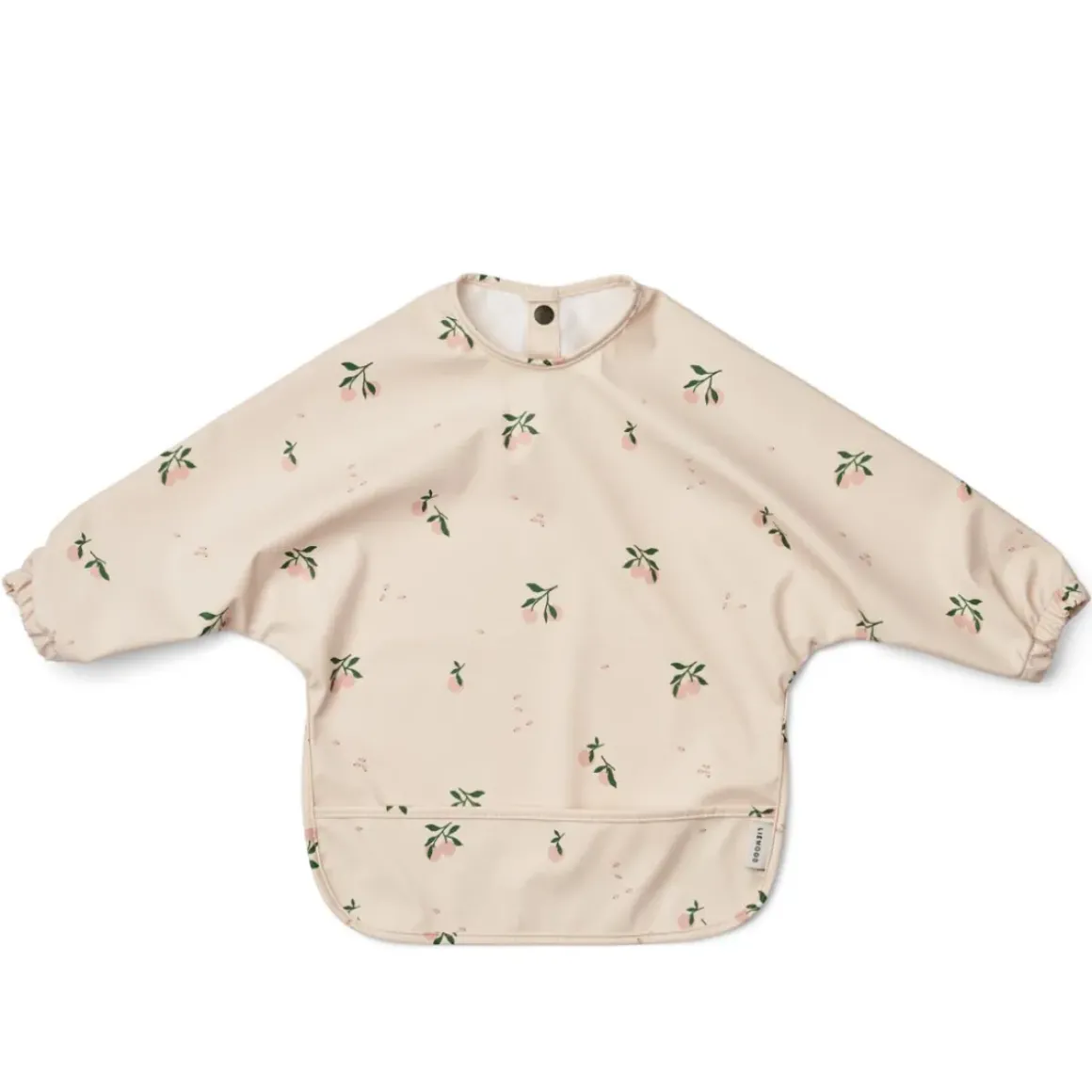 - Praltisk spiseforklæde med længe ærmer og fine print