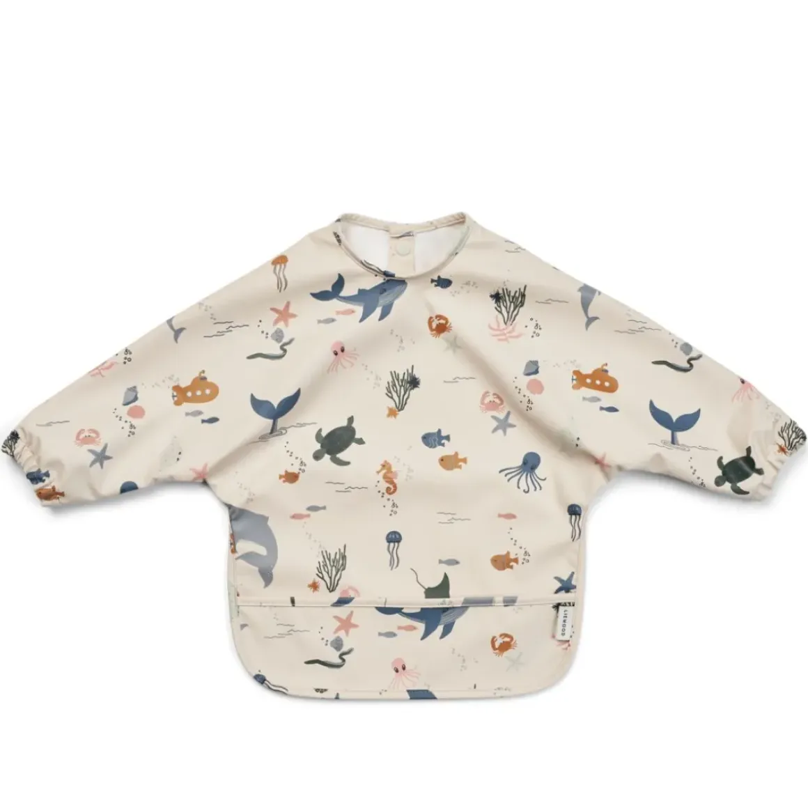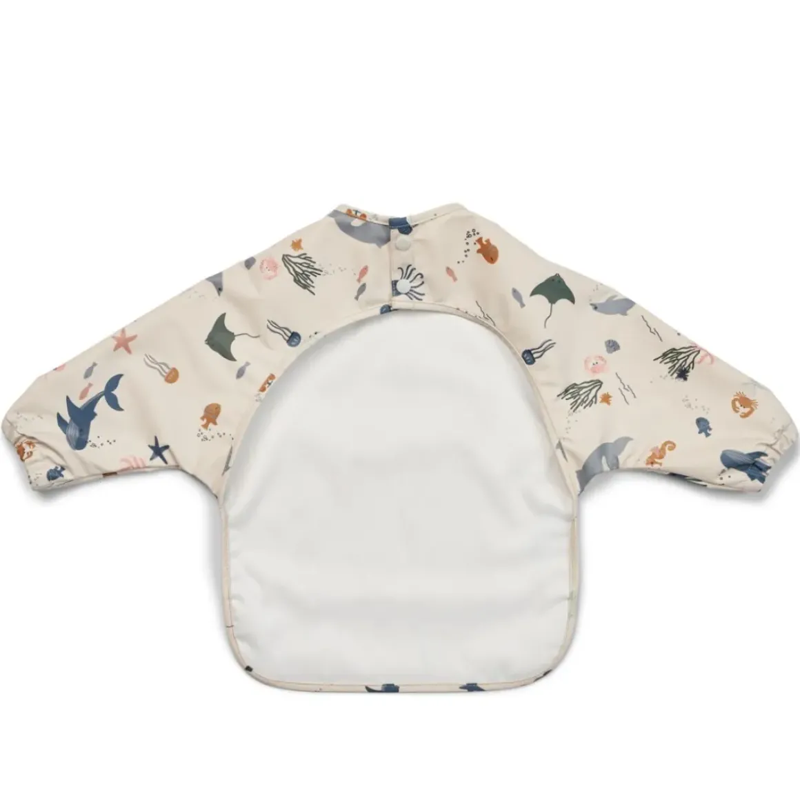- Praltisk spiseforklæde med længe ærmer og fine print