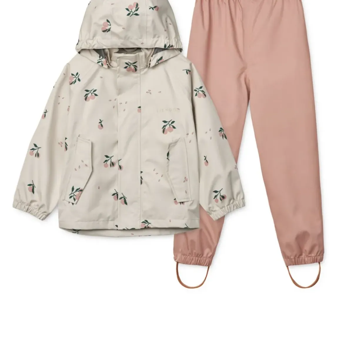 Vind- og vandtæt regnsæt med aftagelig hætte og justbare bukser. Fremstillet i åndbart genanvendt softshelle stof i klassiske LIEWOOD-farver og prints. Jakken har en tildækket lynlås og tappede sømme, der sikrer, at dit barn forbliver varm og tør selv på årets vådeste dage.