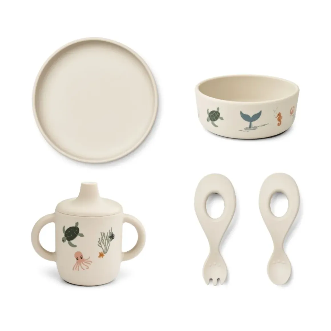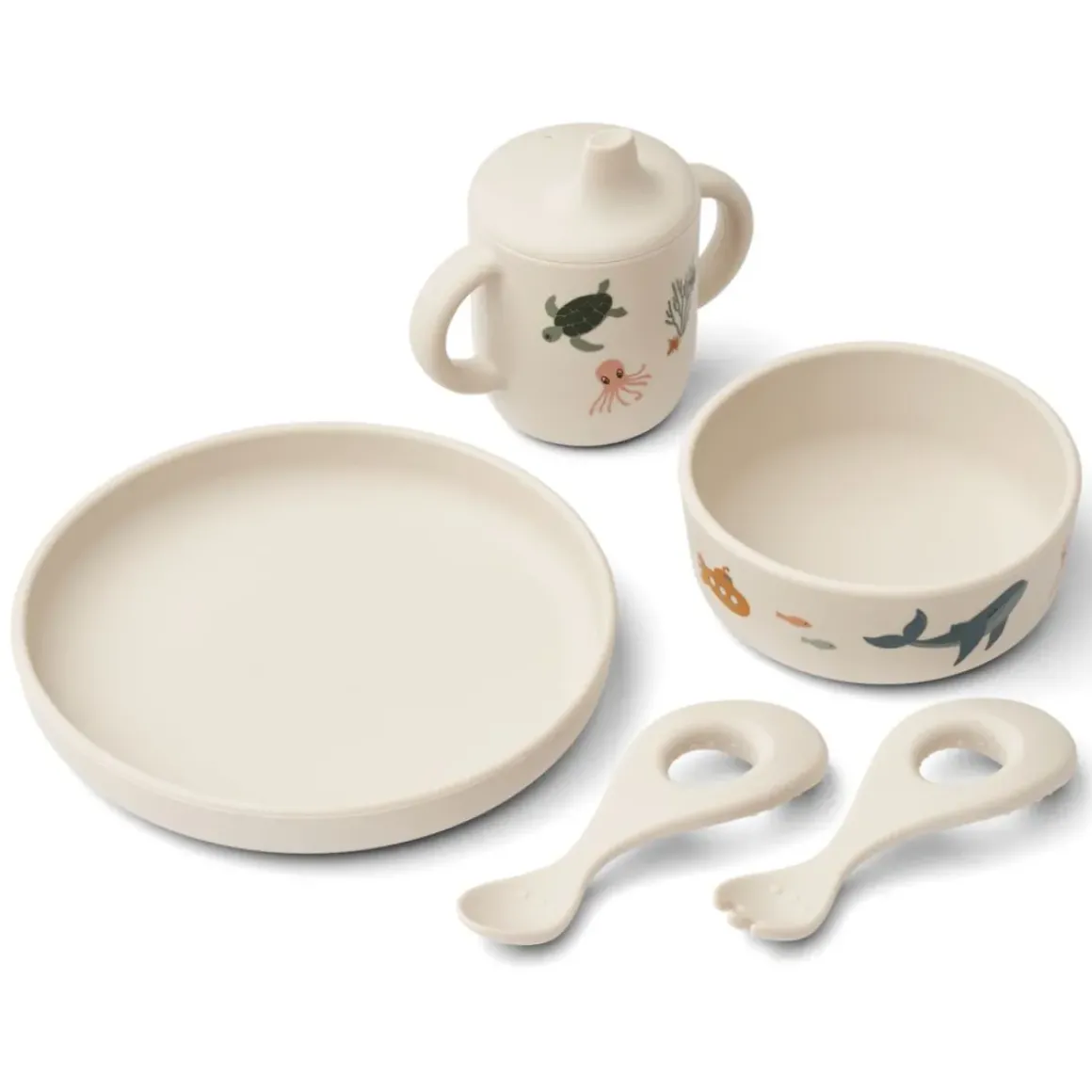 Ryle servicesættet inkluderer en gaffel og ske, skål, tallerken og tudekop og er altså en samling af alle måltidsfavoritter med finurlige print. Det populære sæt er fremstillet i slidstærkt silikone og er både brudsikkert og kan kommes i opvaskemaskinen.