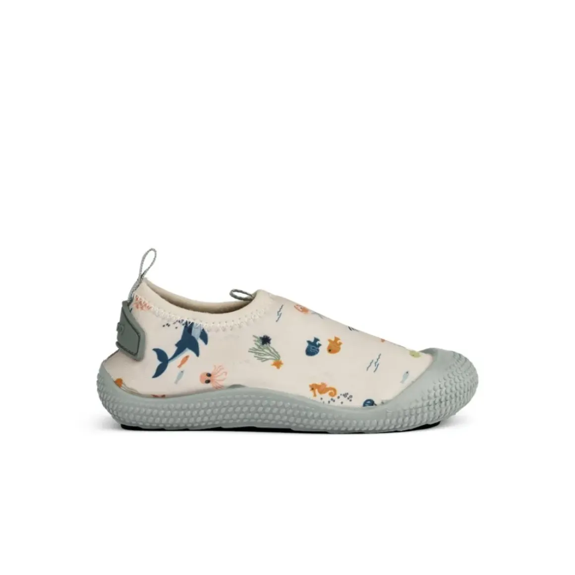 Beskyt små fødder mod muslingeskaller og småsten, når de udforsker stranden og havet. Den holdbare sål af skridsikkert gummi sørger for sikre skridt, mens det hurtigtørrende neopren føles let og behageligt mod den bløde hud. Trækstropperne bagpå gør dem nemme for de små selv at tage af og på.