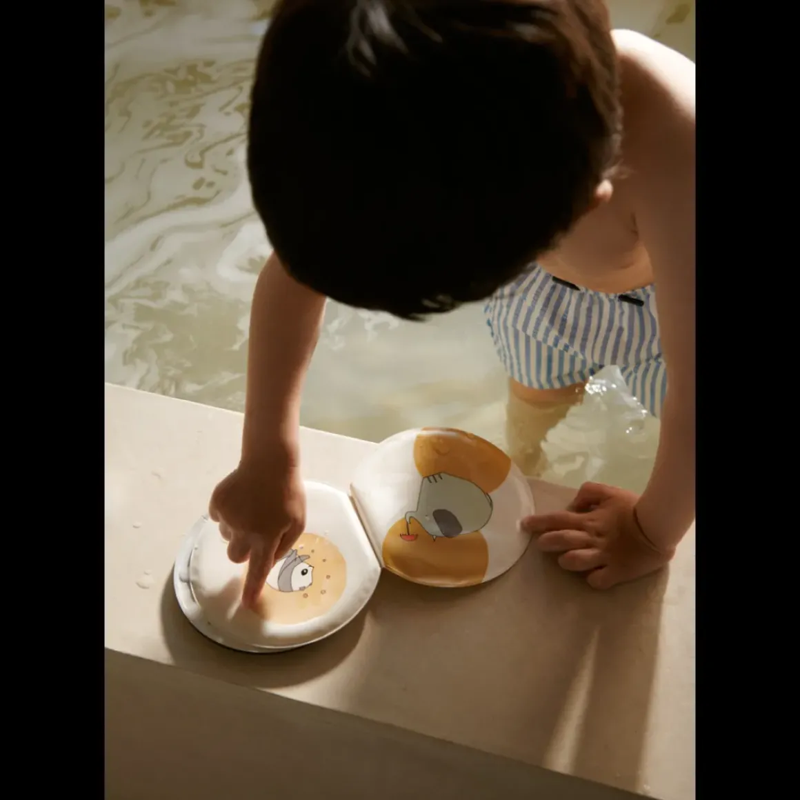 Gør badetid til noget helt specielt med den magiske Waylon-badebog, der er designet til at underholde og engagere babyer og små børn, mens de plasker rundt i badekarret eller i poolen. Sænk bogen ned i vandet, så dit barn kan gå på opdagelse efter de skjulte dyr og illustrationer, der gemmer sig på de siderne.