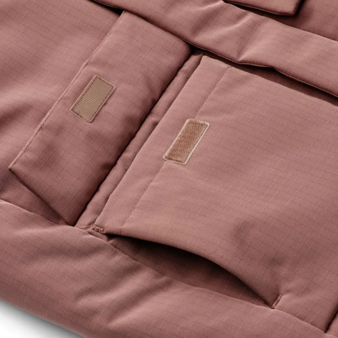 - Udvendigt materiale og foring: 100% genanvendt polyester