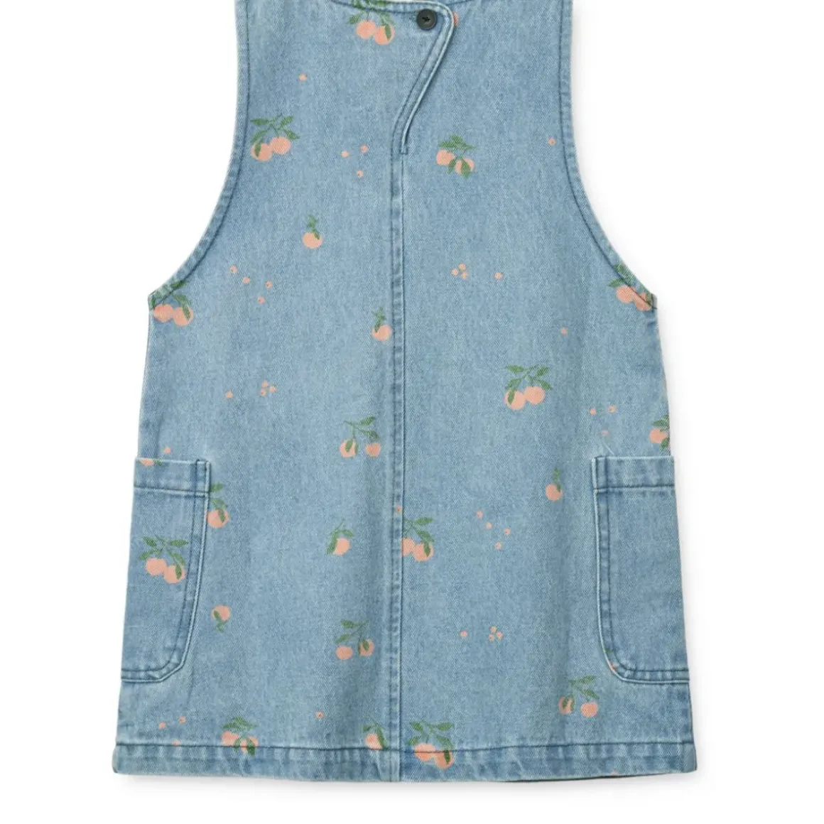 Denimkjole i en lys vask, der giver den et cool og afslappet retro-udtryk. Den har en løs pasform, der sikrer, at kjolen sidder behageligt og det fine fersken print tilfører et legende twist. En moderne klassiker til dit barns garderobe. Kom en bomuldsskjorte under for et cool look.