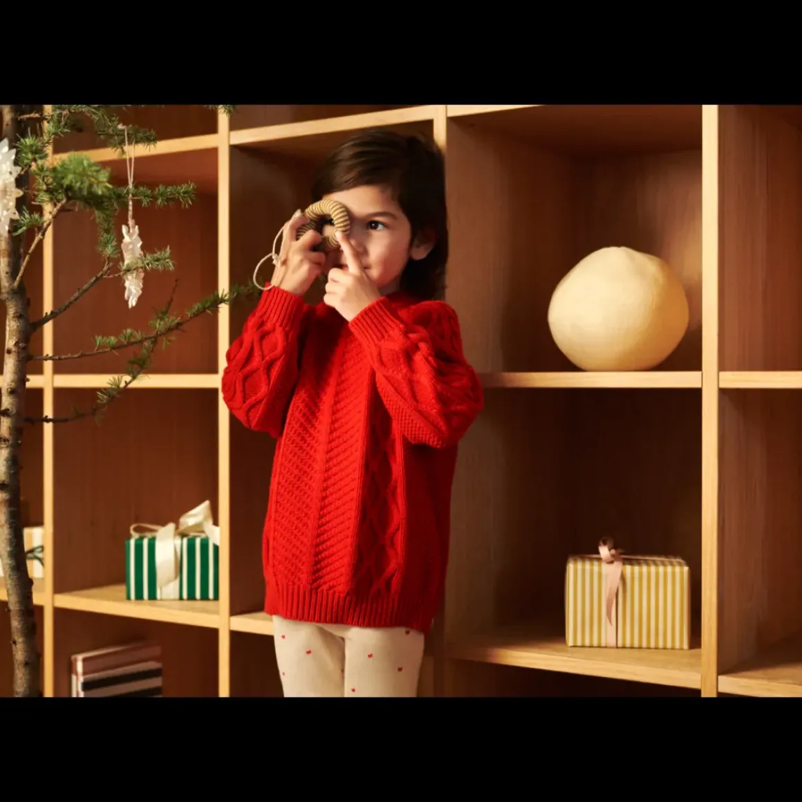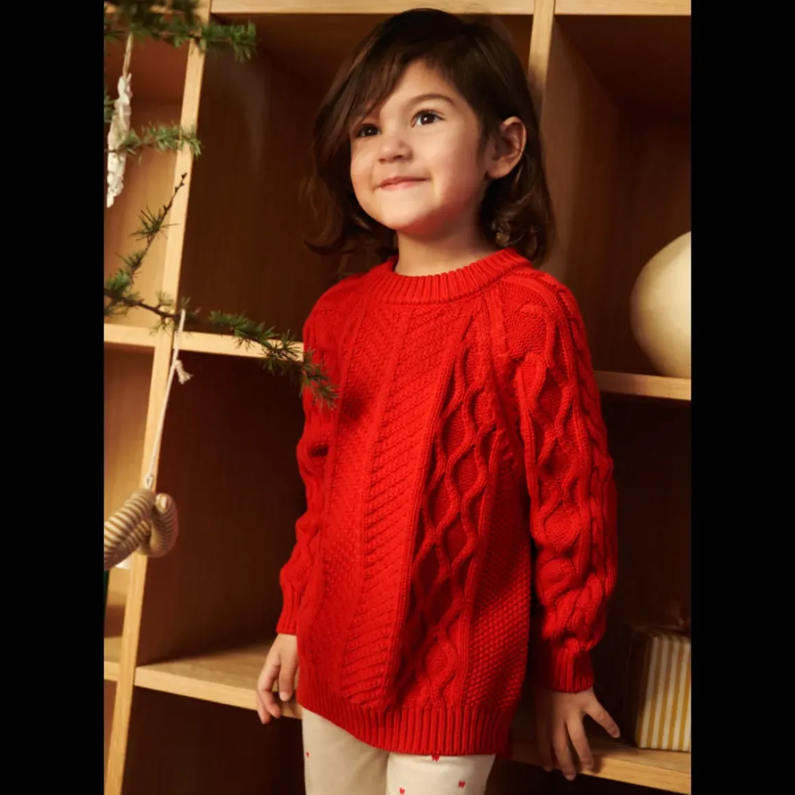Kabelstrikket trøje fremstillet i det blødeste miks af uld og bomuld. Den afslappede pasform er perfekt til langsomme vinter weekender og til behagelige hverdagslooks.