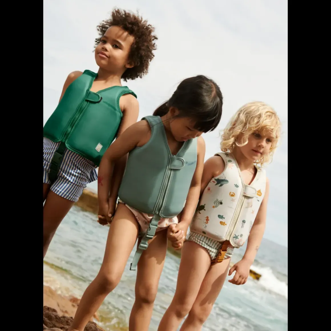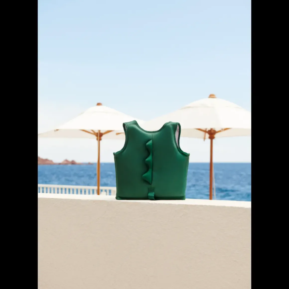 Dove-badevest med sjove krokodilledetaljer på for- og bagsiden af vesten. Den er fremstillet af let og fleksibelt neopren med en glat overflade og enkel form, der giver ultimativ mobilitet. Et perfekt hjælpemiddel til at give børn opdrift og mulighed for at have det sjovt i poolen eller havet. Husk, at børn altid skal være under opsyn af en voksen, når de er i vandet.