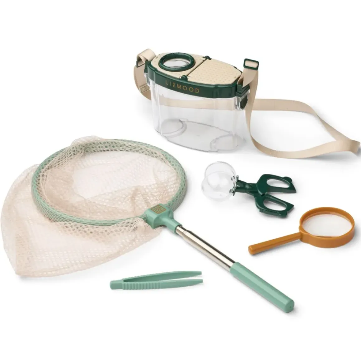 - Kittet består af et forstørrelsesglas, en insektfanger, pincet, et net med teleskopstang og en gennemsigtig beholder
