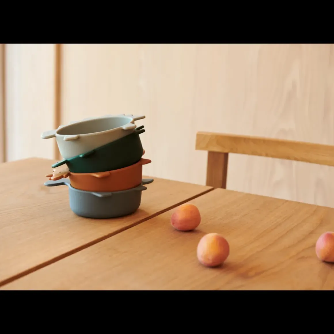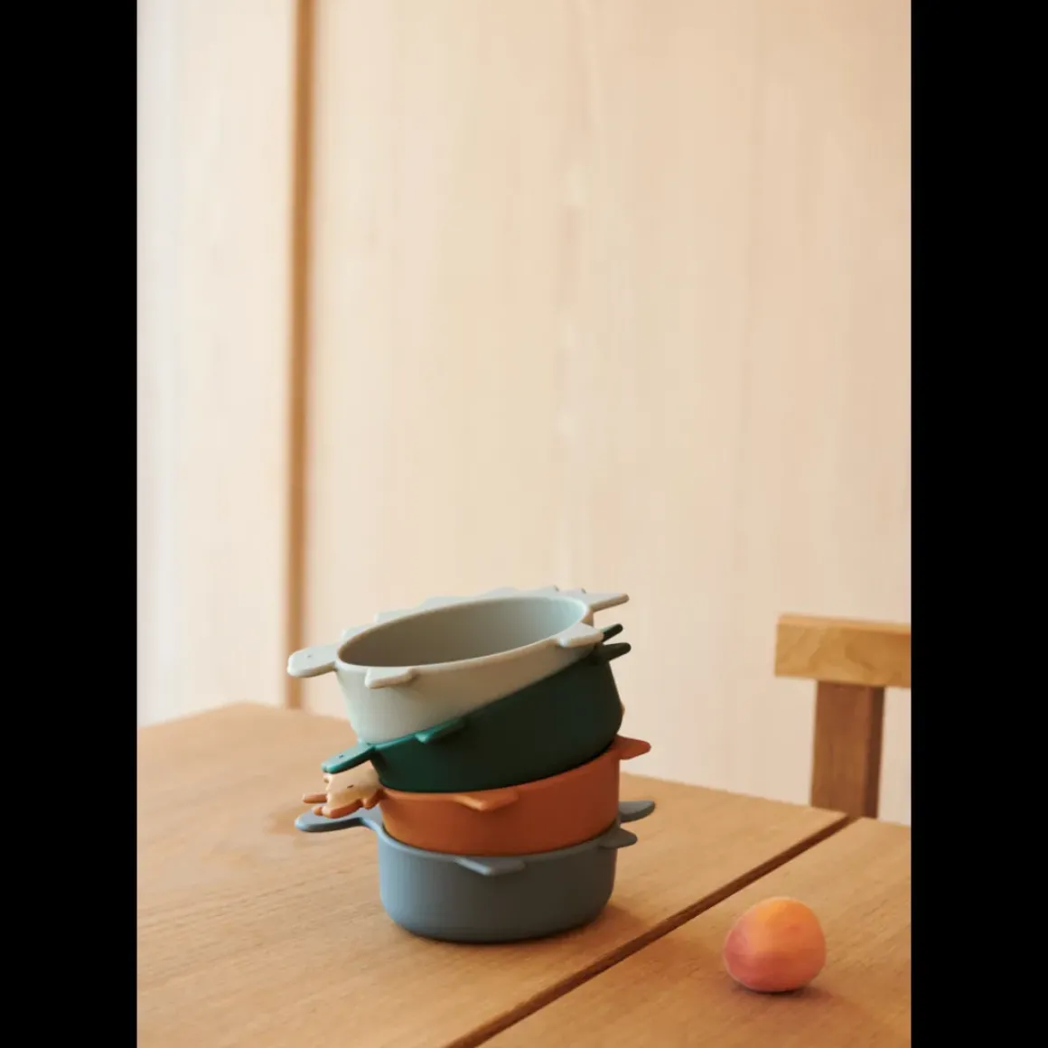 Gør måltiderne lidt sjovere med de bløde Iggy silikoneskåle. De er slidstærke og brudsikre, tåler opvaskemaskinen og er prydet med finurlige dyredetaljer. Den lille størrelse er perfekt til de første oplevelser med mad og grød, og vil senere være en sød lille snackskål.