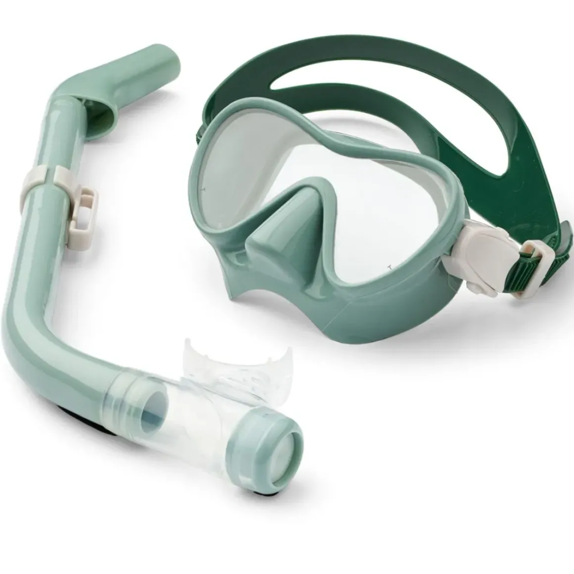 Tag på eventyr under vandet med Jacques snorkel og maskesæt. Masken har en blød silikoneramme, hærdet glaslinse og to spænder, der gør den nem at tage af og på. Den aftagelige snorkel har en særlig top, der sikrer at vandsprøjt og lignende ikke finder vej ned i snorklen og gør den til et godt valg til nye dykkere.