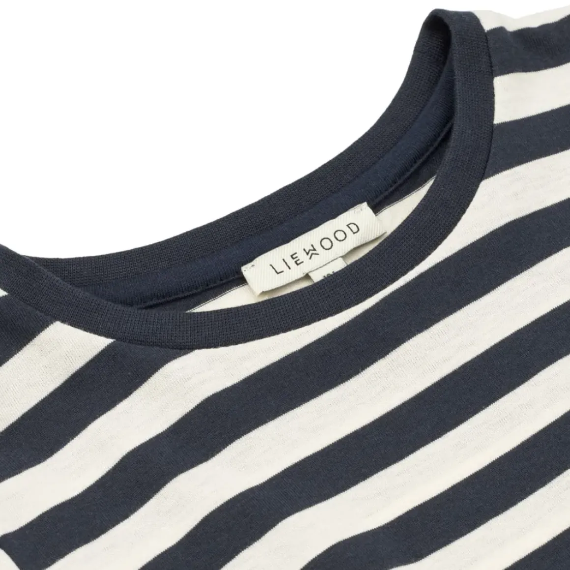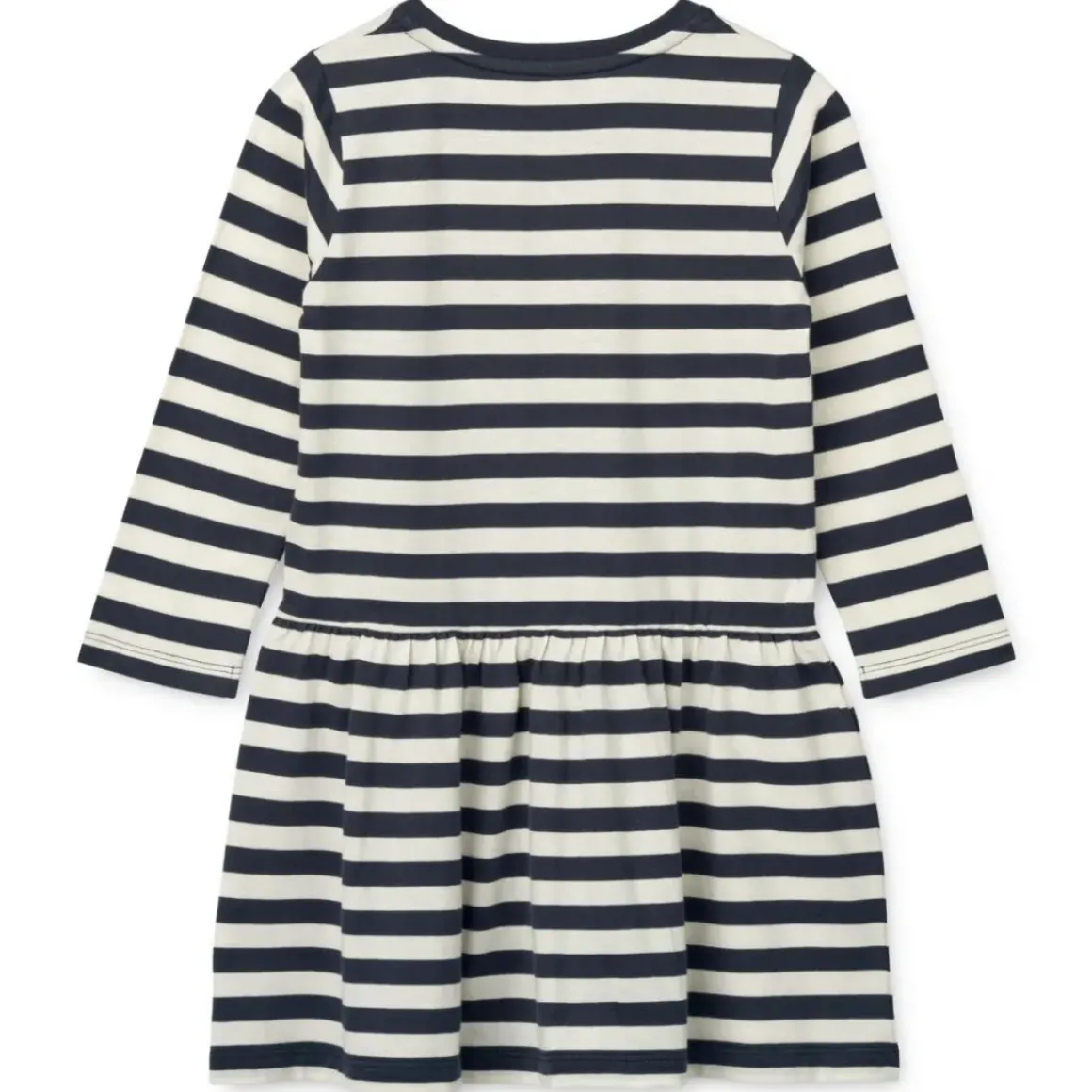 Denne Lima Is kjole i økologisk jersey er en blød og åndbar hverdagsfavorit. Rund, ribstrikket hals, rynket talje og lange ærmer giver et afslappet look, der ikke går på kompromis med komforten.