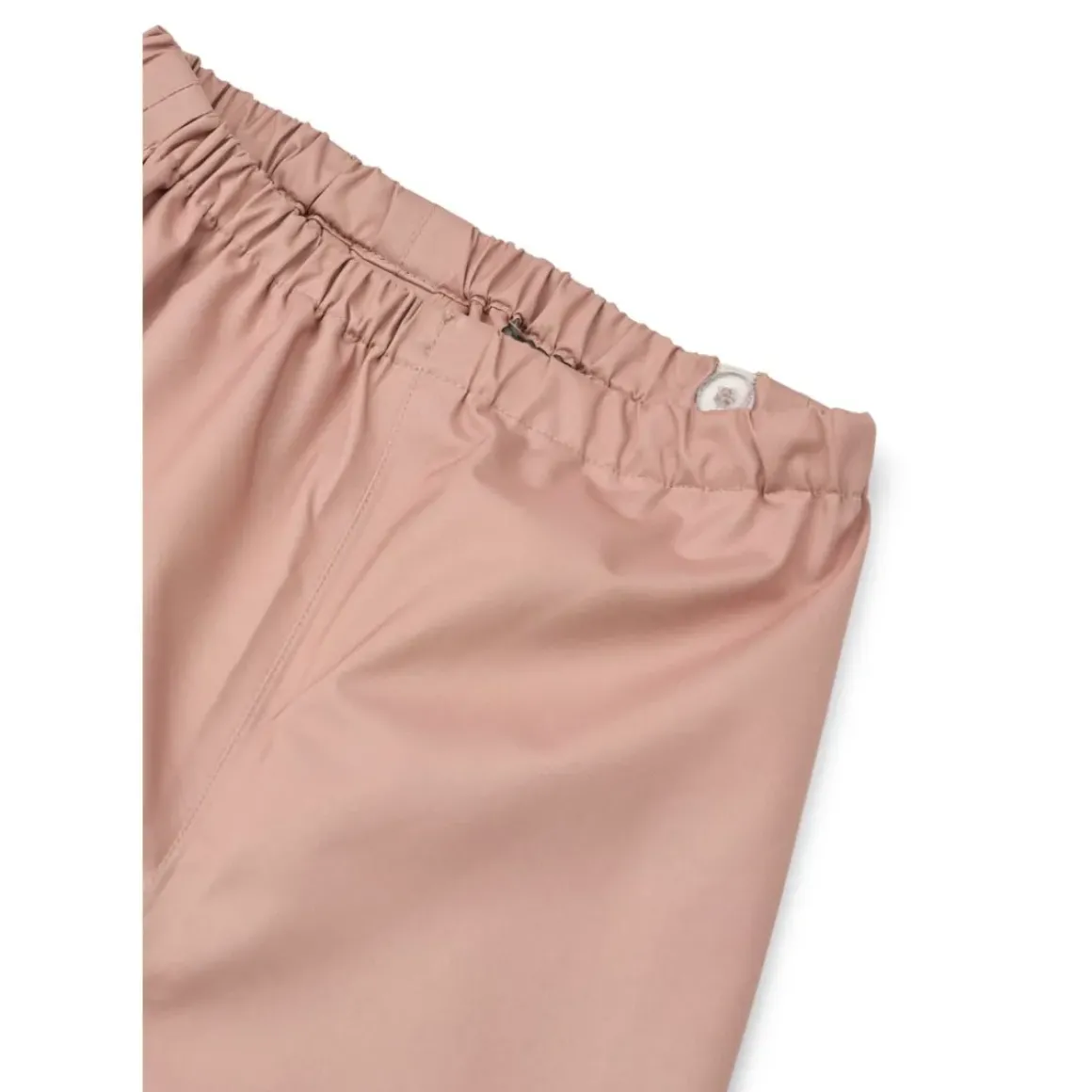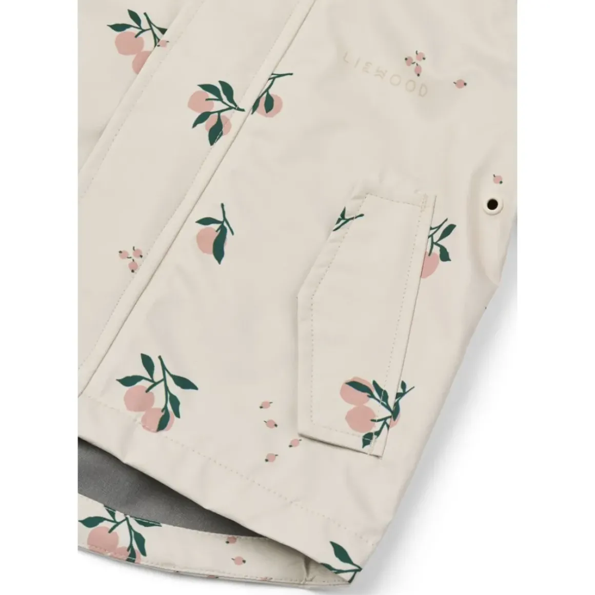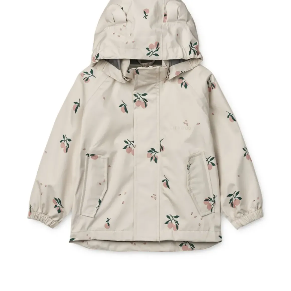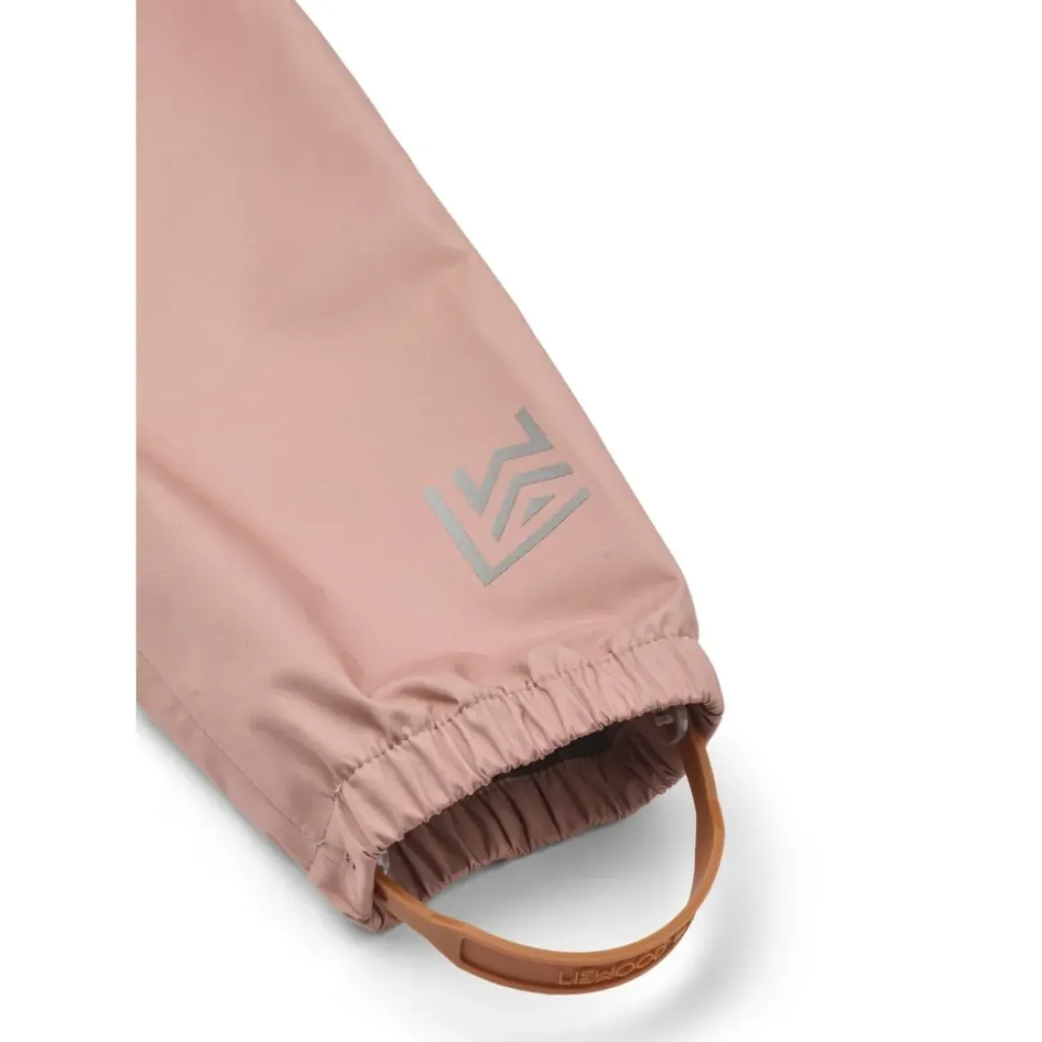 Vind- og vandtæt regnsæt med aftagelig hætte og justbare selebukser. Fremstillet i åndbart genanvendt softshelle stof i klassiske LIEWOOD-farver og prints. Jakken har en tildækket lynlås og tappede sømme, der sikrer, at dit barn forbliver varm og tør selv på årets vådeste dage.