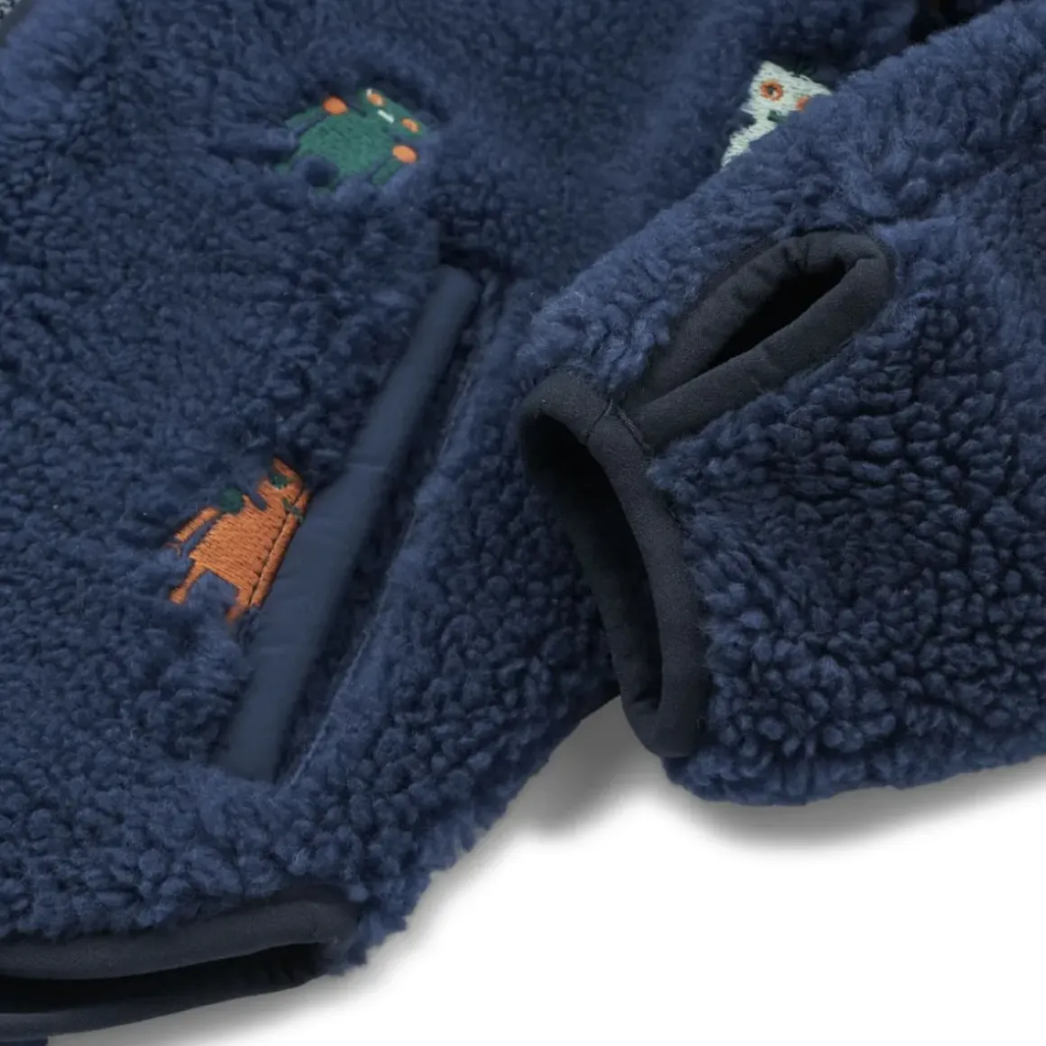 - Har lommer, lynlåslukning og huller til tommelfingrene