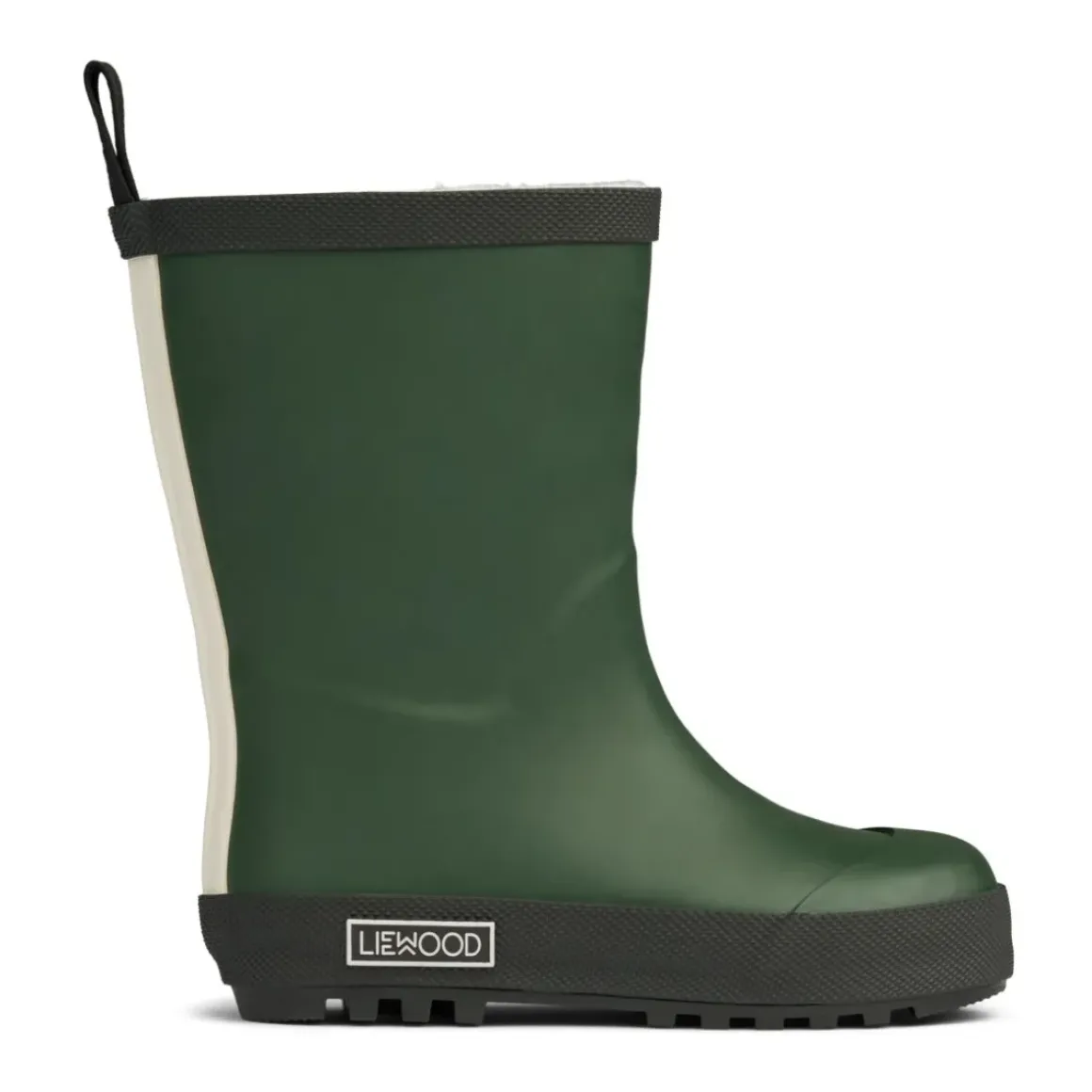 Den høje Mason-termogummistøvle er lidt varmere end normale gummistøvler. Foret med blødt og varmt teddy-stof, lette at tage af og på og har det karakteristiske LIEWOOD-logo.