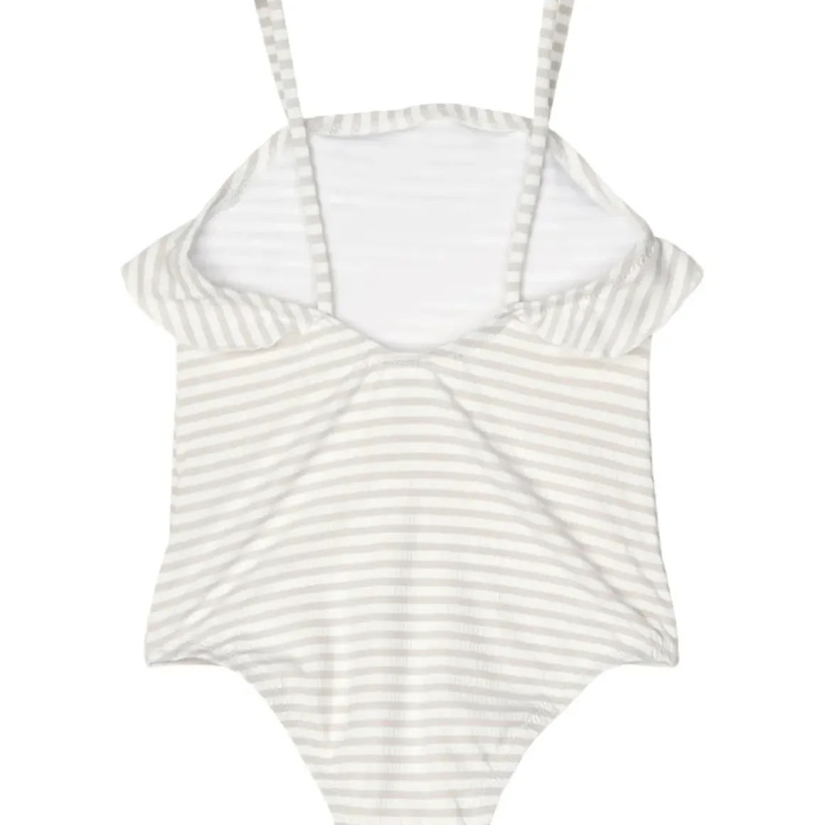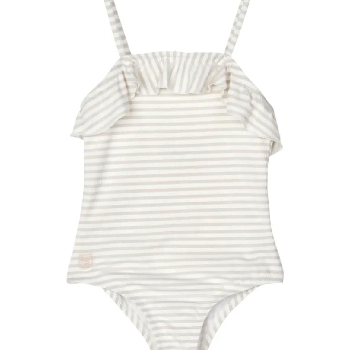 Nogle gange har man brug for en ekstra sjov detalje. Mauricette badedragten med struktur har en enkel badedragtsilhuet med et enkelt lag flæse foran og tynde skulderstropper, der lukkes bagpå. Vælg mellem ensfarvet, striber eller sjove print.