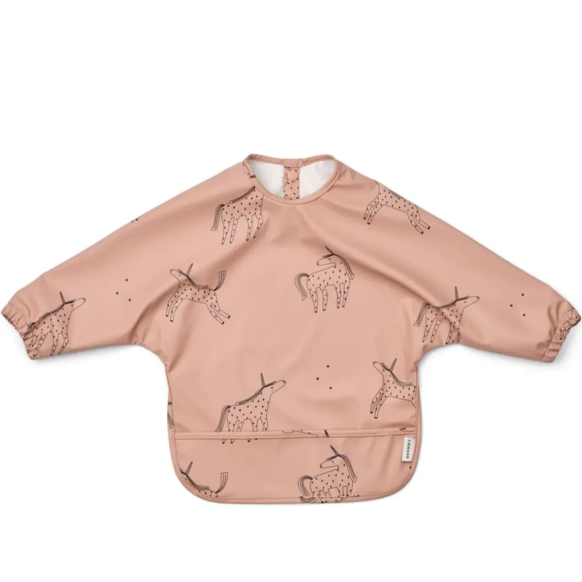 - Praltisk spiseforklæde med længe ærmer og fine print