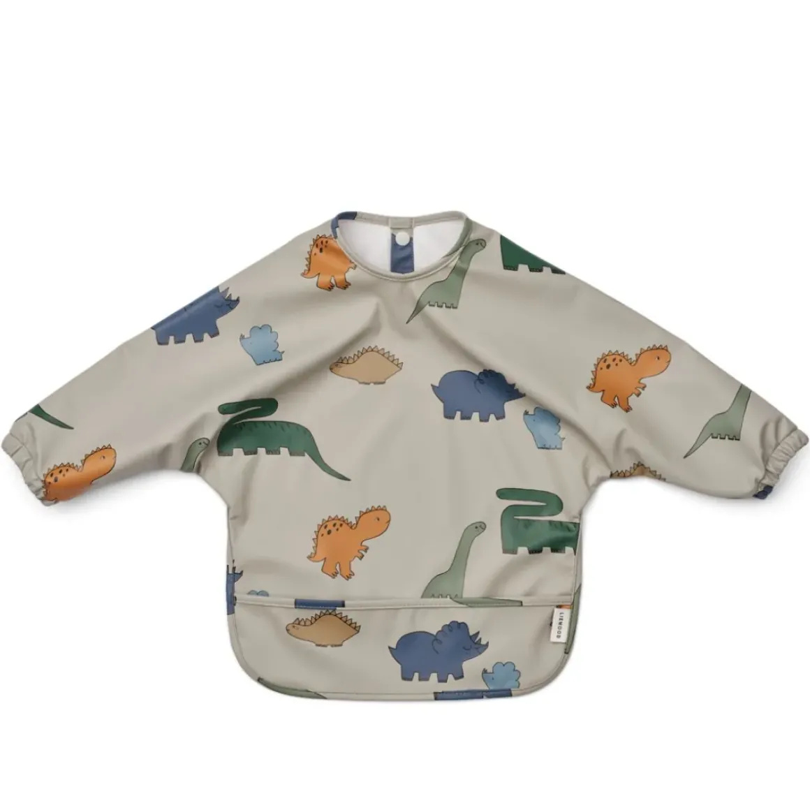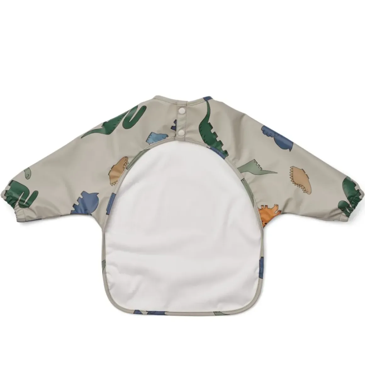 - Praltisk spiseforklæde med længe ærmer og fine print