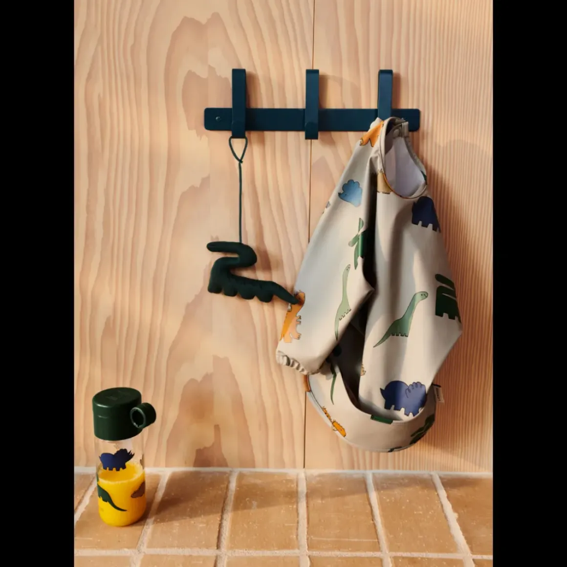 Let spiseforklæde med lange ærmer til små kommende madelskere. Elastikkerne ved ærmerne sikrer en tæt pasform og lommen foran sørger for at gribe spildt mad. Fremstillet i slidstærkt, genanvendt polyester gør spiseforklædet nemt at rengøre samtidig med, at det kan foldes sammen og nemt opbevares derhjemme eller når I er på farten.