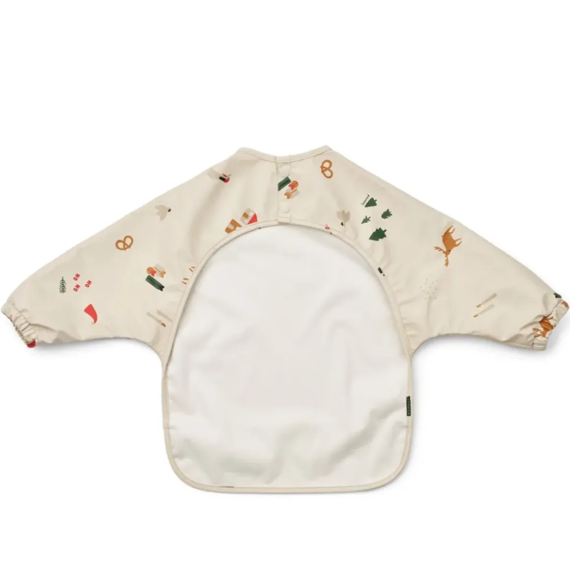 - Praltisk spiseforklæde med længe ærmer og fine print