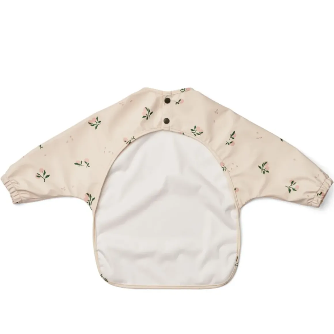 - Praltisk spiseforklæde med længe ærmer og fine print