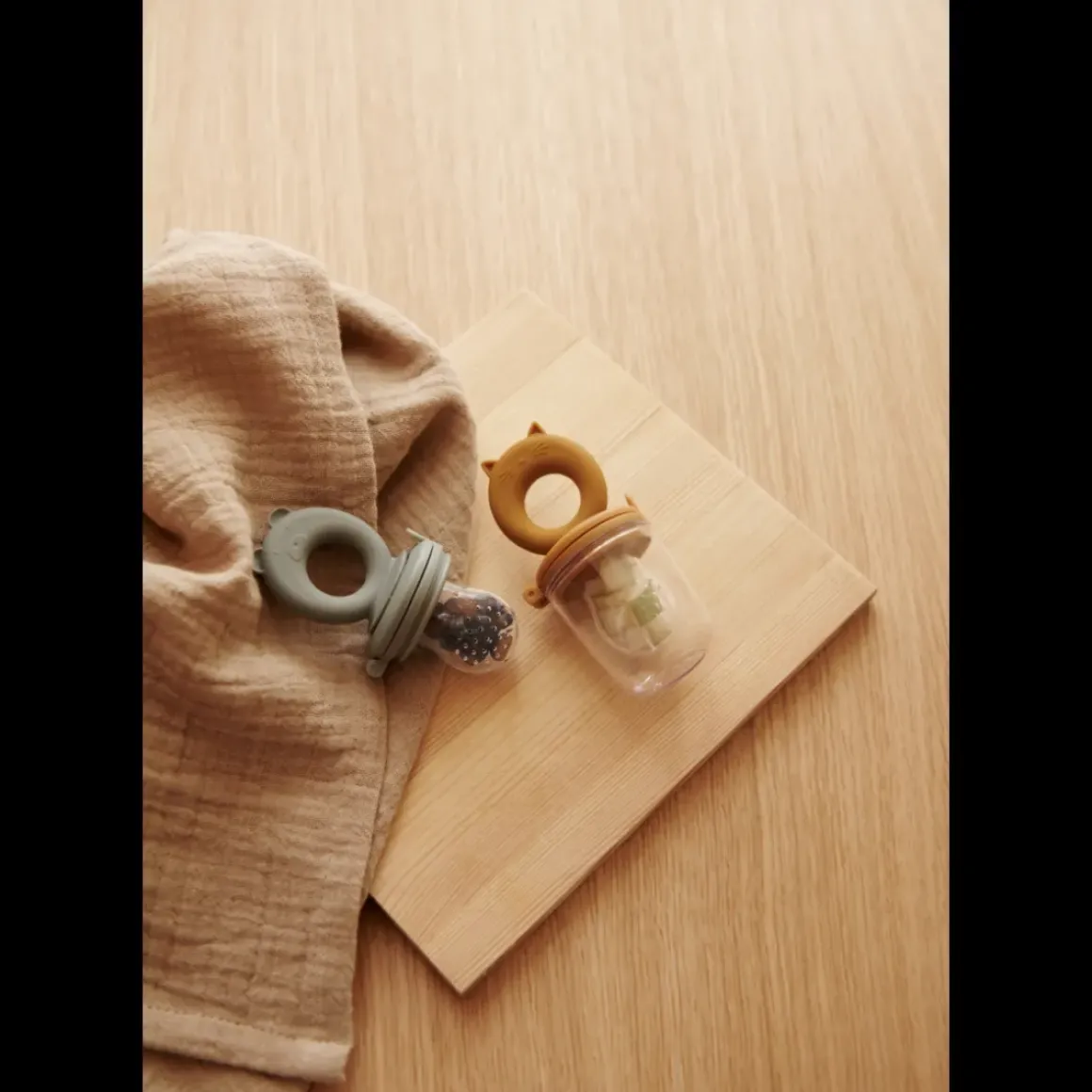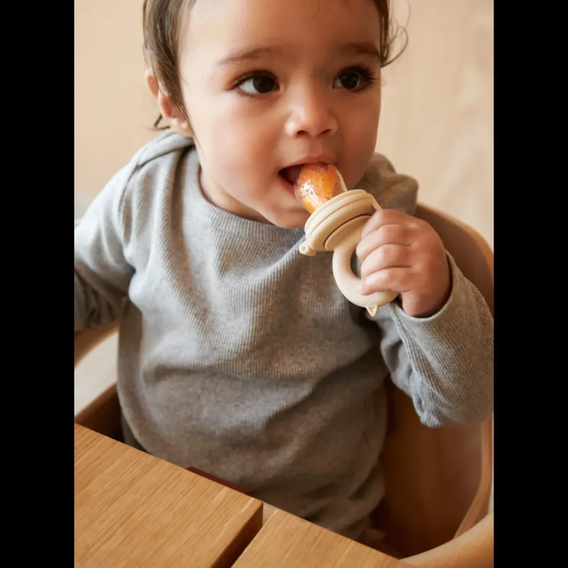 Miranda food feederen er en god måde at introducere de mindste til fast mad og vække interessen for deres fremtidige smagseventyr. Den er fremstillet i slidstærk tritan og silikone og kommer med perforerede sutter i to forskellige størrelser. Den tåler opvaskemaskinen og er altså ligetil at gøre til en del af måltiderne eller til små snacks, når I er på farten.