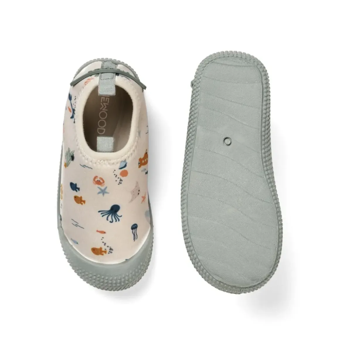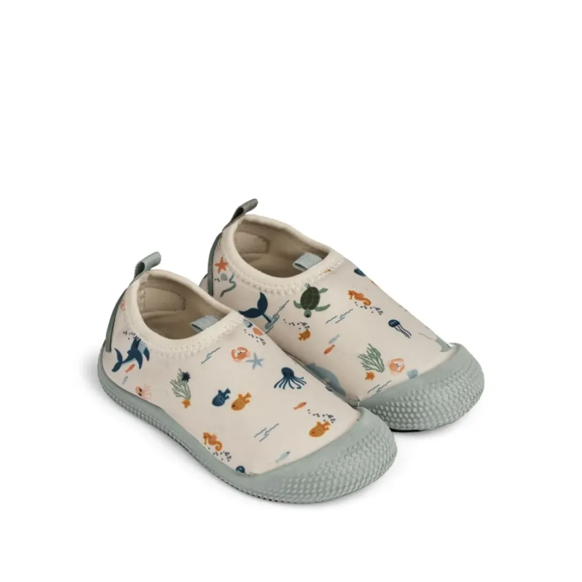 Beskyt små fødder mod muslingeskaller og småsten, når de udforsker stranden og havet. Den holdbare sål af skridsikkert gummi sørger for sikre skridt, mens det hurtigtørrende neopren føles let og behageligt mod den bløde hud. Trækstropperne bagpå gør dem nemme for de små selv at tage af og på.