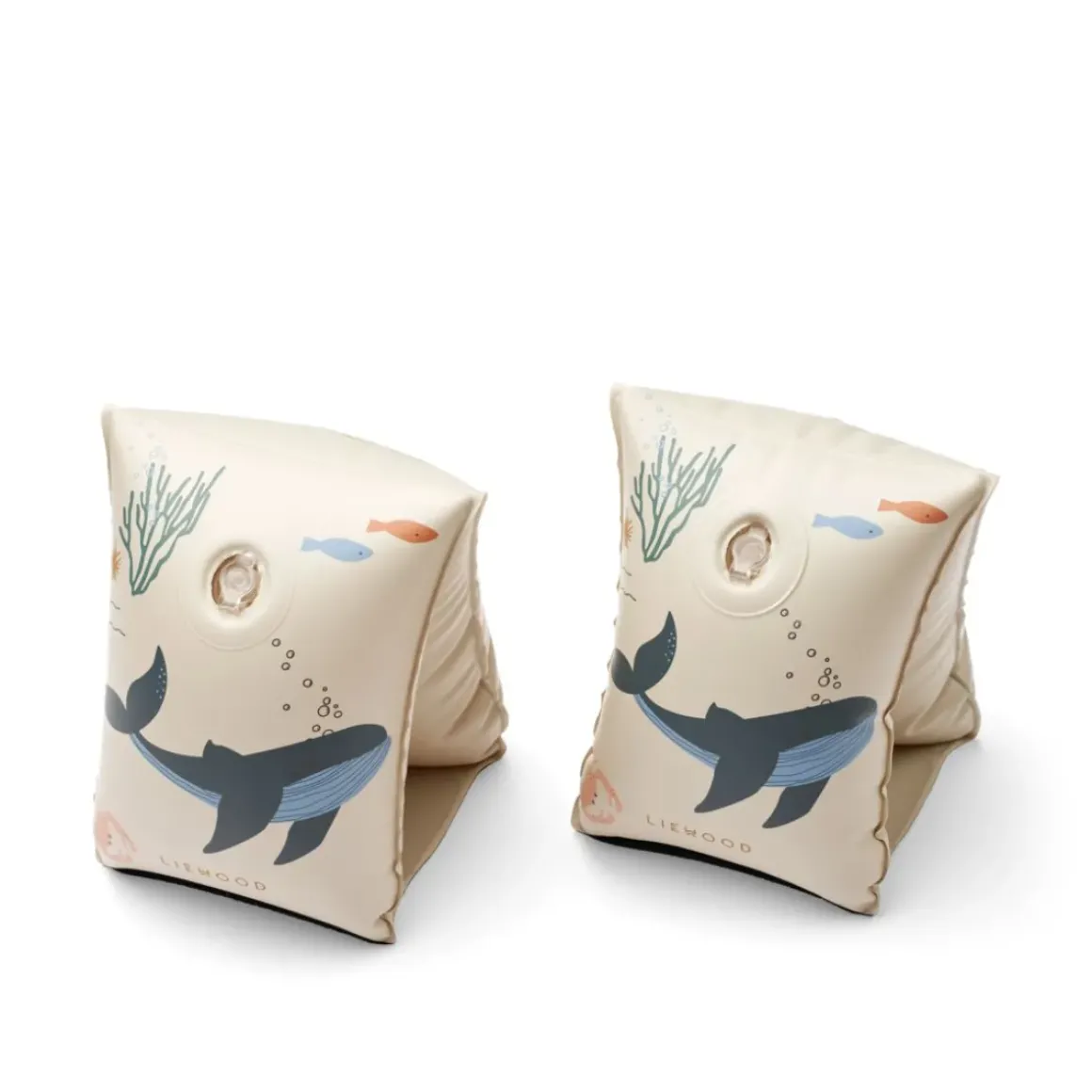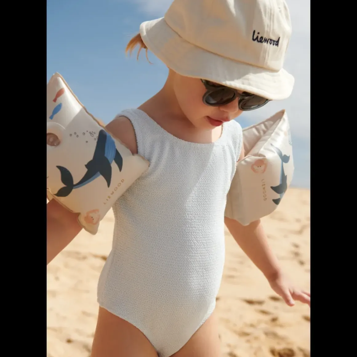 Få dit barn til at føle sig tryg og sikker i vandet med Shirley-badevingerne. Badevingerne er fremstillet af blød PVC og har to luftkamre, der gør det nemmere for nye svømmere at bevæge sig i vandet.