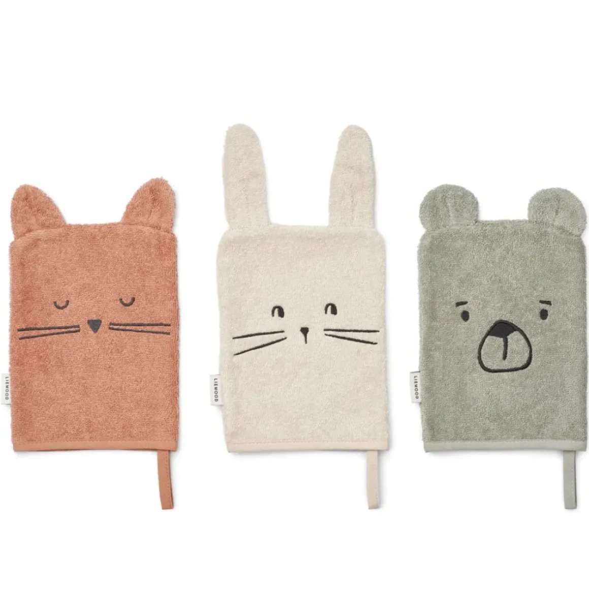 Hav det sjovt sammen under baderutinen med vores Sylvester vaskeklude med søde broderede dyreansigter. Vaskekludene er designet som en handske til at have på hånden, der gør det nemmere at vaske dit barn — og er samtidig en oplagt mulighed for at lege.