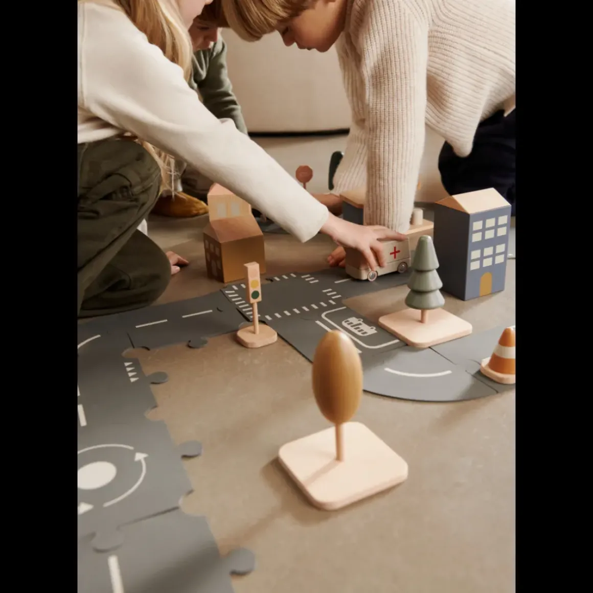 Gør landsbyen LIEWOOD levende med et vrum fra træbilsættet, der indeholder en bus, en taxa og en bil med fungerende træhjul. Det er fremstillet i naturligt bøgetræ og MDF og er sikkert at bruge uden små dele for selv de allermindste børn. Kombiner den med garagen fra LIEWOOD Village, eller tilføj eksteriør, så barnet kan bygge sin helt egen landsby.