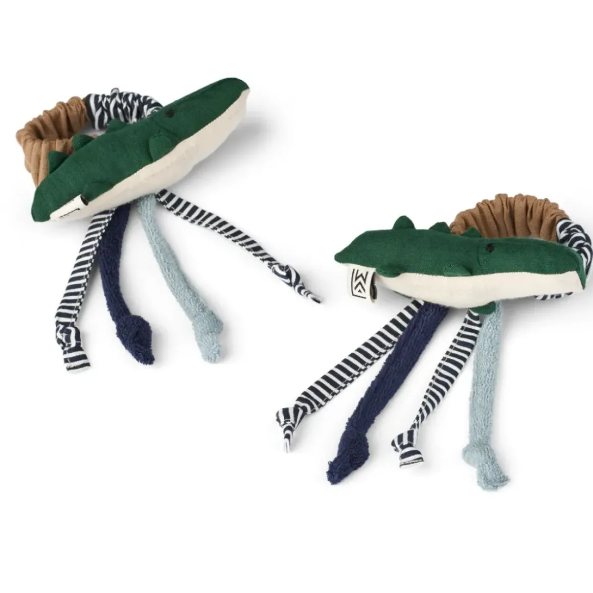 Underhold barnet tæt på med den bløde Willy håndledsrangle. Ranglen fås i et udvalg af farver, detaljer og kvaliteter og er fremstillet i økologisk bomuld med blødt polyesterfyld, der er skånsomt mod barnets hud og nemt at fastgøre. Nyd at se barnet udforske sin nye verden med den underholdende og sikre rangle.