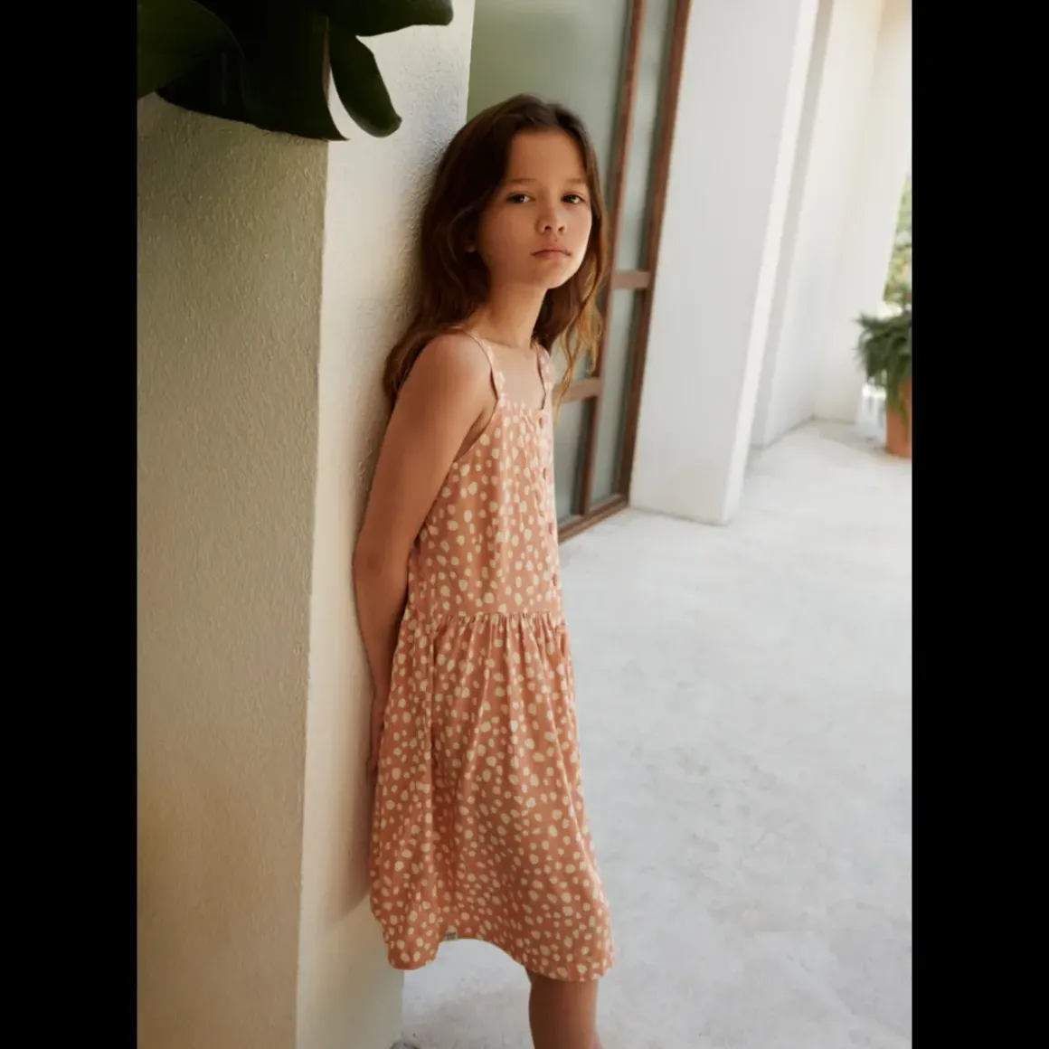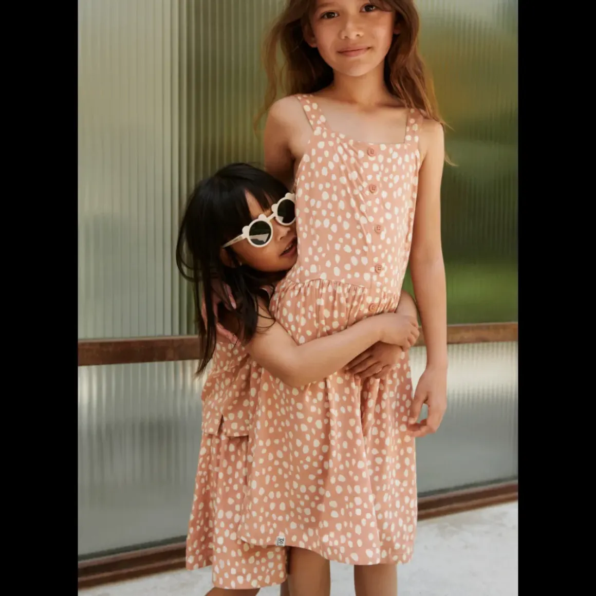 Tilfør tekstur til dit barns sommergarderobe med den lette Zia-kjole. Den lette A-facon giver frihed på solrige dage og knaplukningen foran giver et strejf af tidløs elegance.